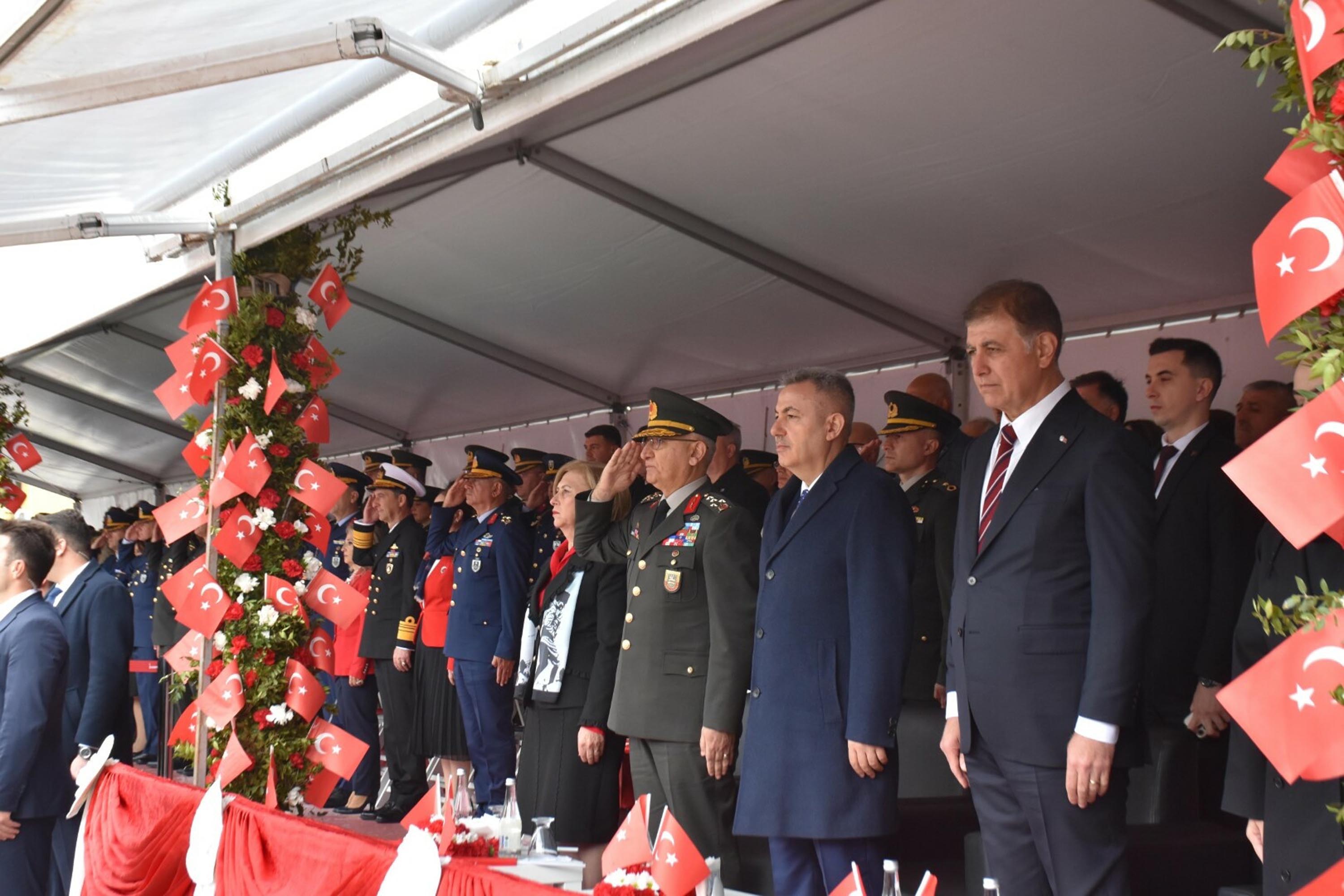 23 Nisan Ulusal Egemenlik ve Çocuk Bayramı ve TBMM'nin kuruluşunun 106’ncı yıl dönümü nedeniyle İzmir’de Cumhuriyet Meydanı’nda tören düzenlendi. Törende Kahramanmaraş’ta meydana gelen okul saldırılarında hayatını kaybeden öğretmen ve öğrenciler anısına saygı duruşunda bulunuldu.