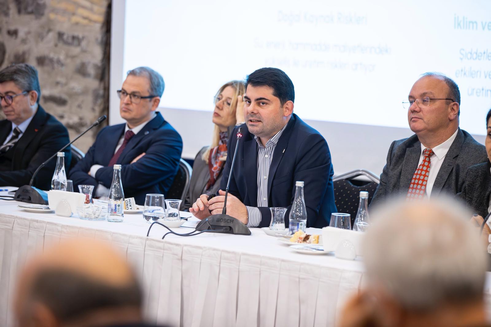 Toplantıda İzmir Kalkınma Ajansı Genel Sekreteri Dr. Mehmet Yavuz tarafından “İzmir Kaynak Verimliliği Merkezi” başlıklı sunum gerçekleştirildi. Dr. Yavuz, Avrupa Birliği Yeşil Mutabakatı’nın çevresel konuları muhasebe, finansman ve iş dünyasıyla ilişkilendirmesiyle birlikte bu merkezin bir gereklilik haline geldiğini ifade etti. Dr. Yavuz, Avrupa Birliği’nin 1 Ocak 2026 itibarıyla Yeşil Mutabakat kapsamında sınırda karbon vergisi uygulamasını bazı sektörlerde hayata geçireceğini hatırlatarak, dış ticaretinin yarısından fazlasını Avrupa ile gerçekleştiren Türkiye için bu sürece uyum sağlamanın büyük önem taşıdığını vurguladı. İzmir Kaynak Verimliliği Merkezi ile bölgede başta sanayi ve tarım olmak üzere tüm sektörlerde sürdürülebilir üretim, endüstriyel simbiyoz ve dijital dönüşüm uygulamalarının geliştirilmesi ve yaygınlaştırılmasına yönelik teknik destek ve danışmanlık hizmeti sunulması hedefleniyor.