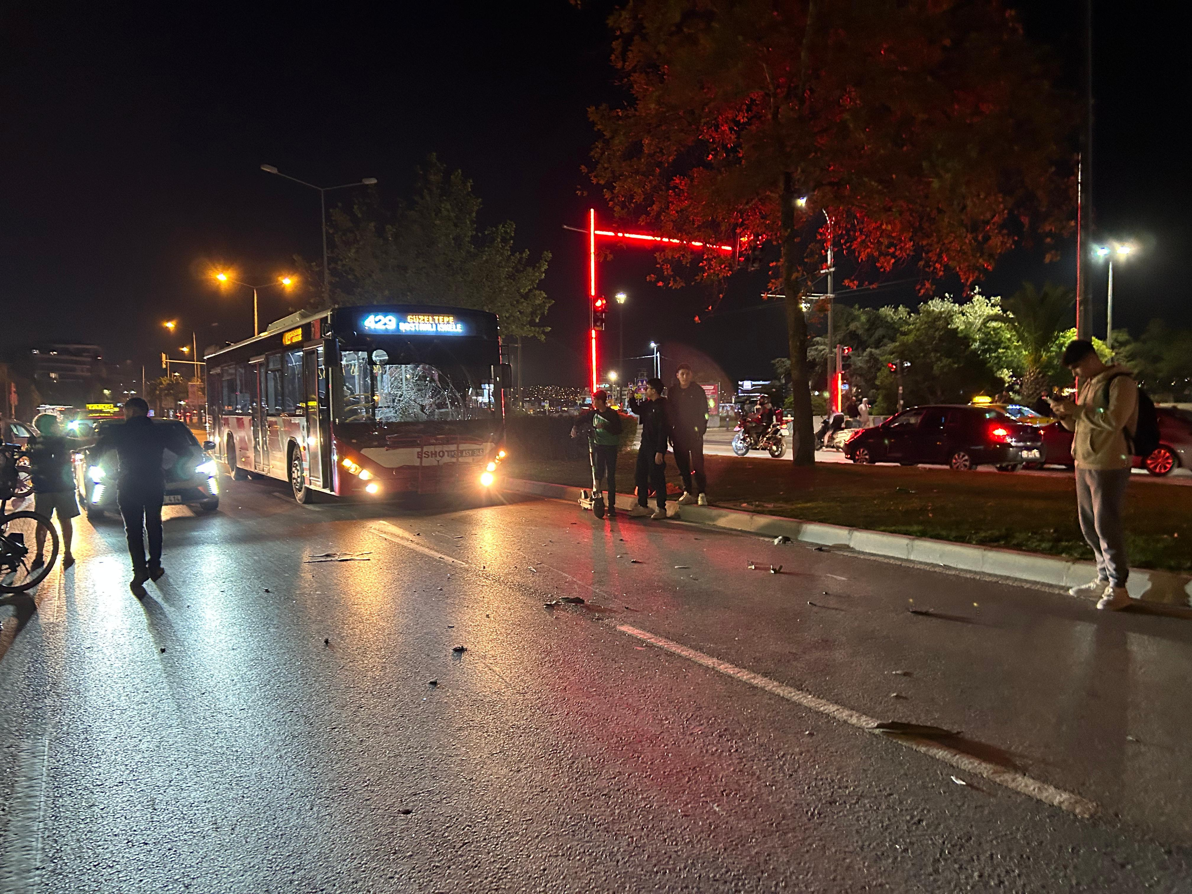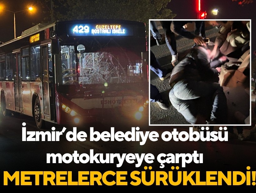 İzmir’de belediye otobüsü motokuryeye çarptı: Metrelerce sürüklendi!