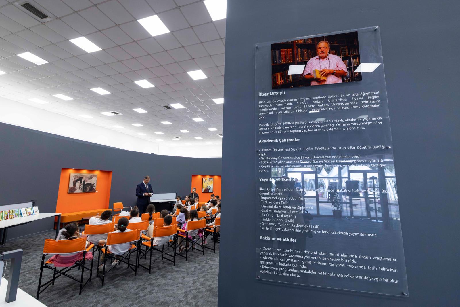 İzmir Büyükşehir Belediyesi tarafından Kültürpark’ta hizmete alınan İlber Ortaylı Kütüphanesi’nde Okul Aile Birliklerine Destek Projesi kapsamında düzenlenen etkinlikte, minikler keyifli bir gün geçirdi. Kütüphanede çocuklarla buluşan Başkan Tugay, onlara Ömer Seyfettin’in Pembe İncili Kaftan hikâyesini okudu. Başkan Tugay’ı dikkatle dinleyen çocuklar, hikâyenin sonunda kitaba dair fikirlerini paylaştı.