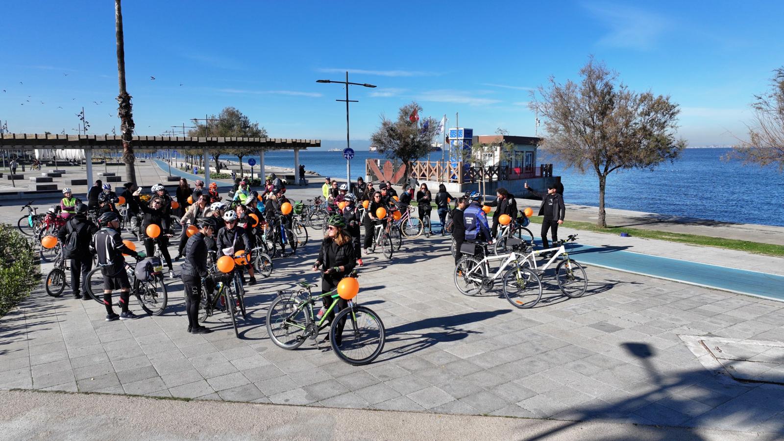Kadınlar turuncu giysileriyle Vasıf Çınar Meydanı’nda buluştu. “Şiddete Karşı Pedal Çevir” ekibi ise Karantina sahilinden yola çıktı.