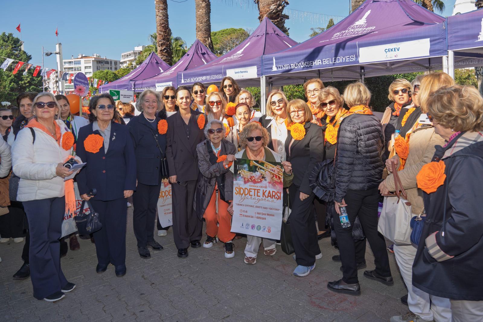 25 Kasım Kadına Yönelik Şiddete Karşı Uluslararası Mücadele Günü kapsamında İzmir Büyükşehir Belediyesi tarafından “Şiddete Karşı Bir Aradayız” ve “Birlikte Güçleniyoruz: Şiddetsiz Bir Kent İçin Kadın Dayanışması” temalarıyla düzenlenen etkinlikler “Eşitliğe Yürüyoruz” Farkındalık Yürüyüşü ile devam etti.