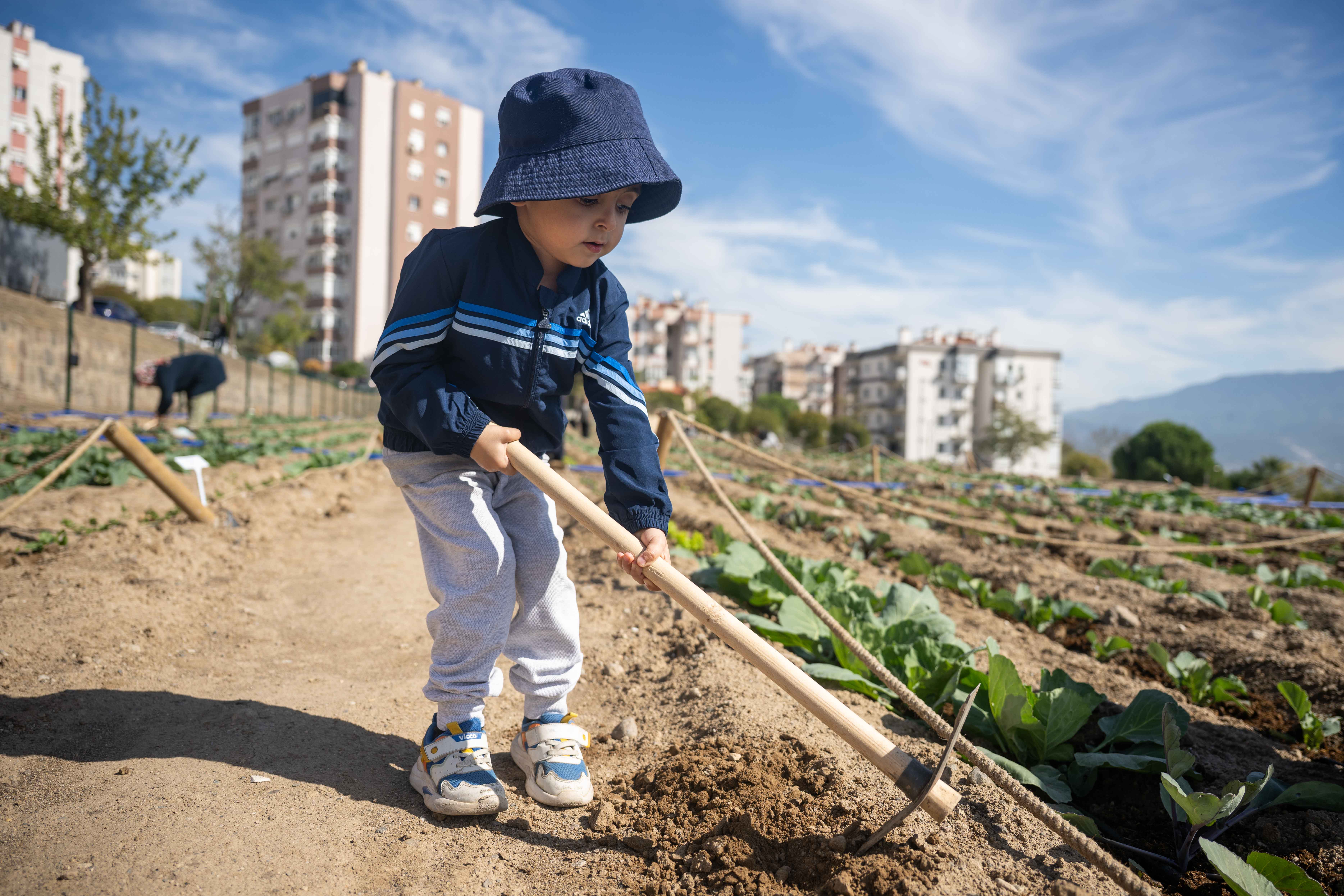 EVKA-4 Kent Bostanı’nda üretim yapan Mine Aynur Sarıyel, toprakla buluşmanın kendisi için anlamını şu sözlerle anlattı: “Annemizden babamızdan bir tarla kalmadı ama Ömer Başkanımız burayı bize verdi. Burayı ekip biçiyoruz, çok güzel zaman geçiriyoruz. Burada sosyalleşiyor, arkadaşlıklar kuruyoruz. Ürünlerimizi toprakla buluşturduk, inşallah Allah yemeyi de nasip eder.”