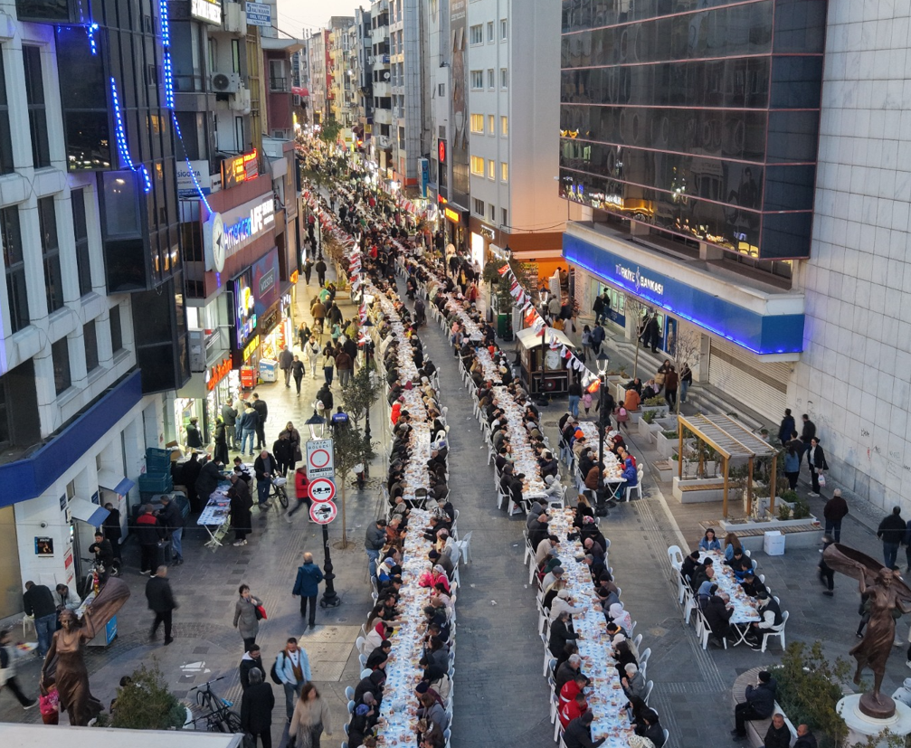 Karşıyaka Belediyesi, Kadir Gecesi’nde Karşıyaka Çarşısı’nda dev bir iftar sofrası kurdu. Yaklaşık 5 bin kişinin aynı sofranın etrafında buluştuğu gecede, Karşıyaka ruhuyla birlik ve beraberlik örneği sergilendi. Belediye Başkanı Yıldız Ünsal “Büyük bir aile olduğumuzu bu anlamlı gecede bir kez daha gösterdik. Soframızı paylaşan tüm vatandaşlarımıza yürekten teşekkür ediyorum” dedi.