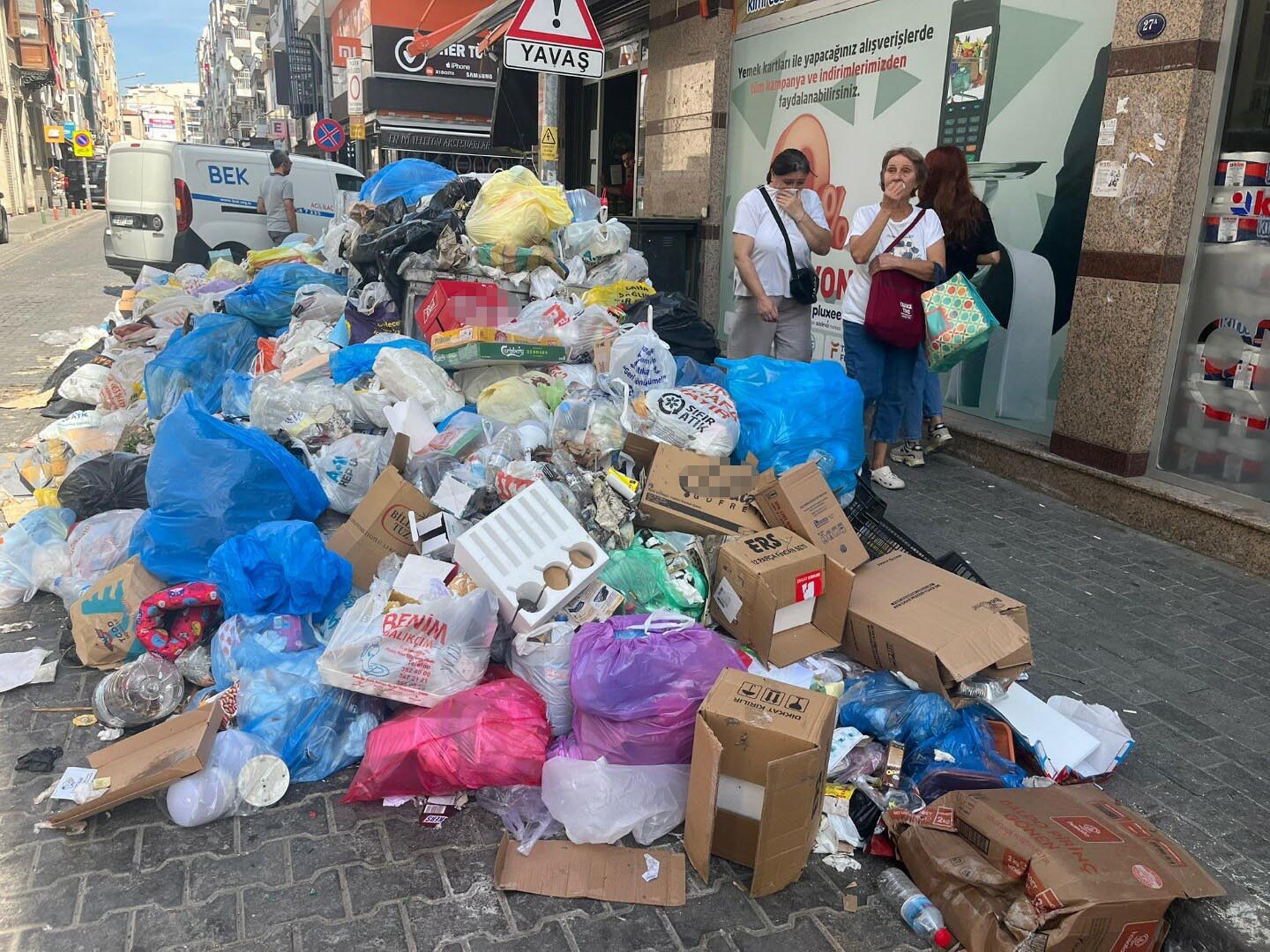 İzmir'in Karşıyaka Belediyesi’nde, DİSK Genel-İş 10 No'lu Şube üyesi, Kent A.Ş. ve Personel AŞ'de çalışan işçiler, maaş ve geriye dönük toplu iş sözleşmesi (TİS) haklarını alamadıkları gerekçesiyle başlattıkları eyleme dün akşam son vermelerine rağmen işlek cadde ve sokaklarda yığın haldeki çöplerin alınmadığı görüldü.