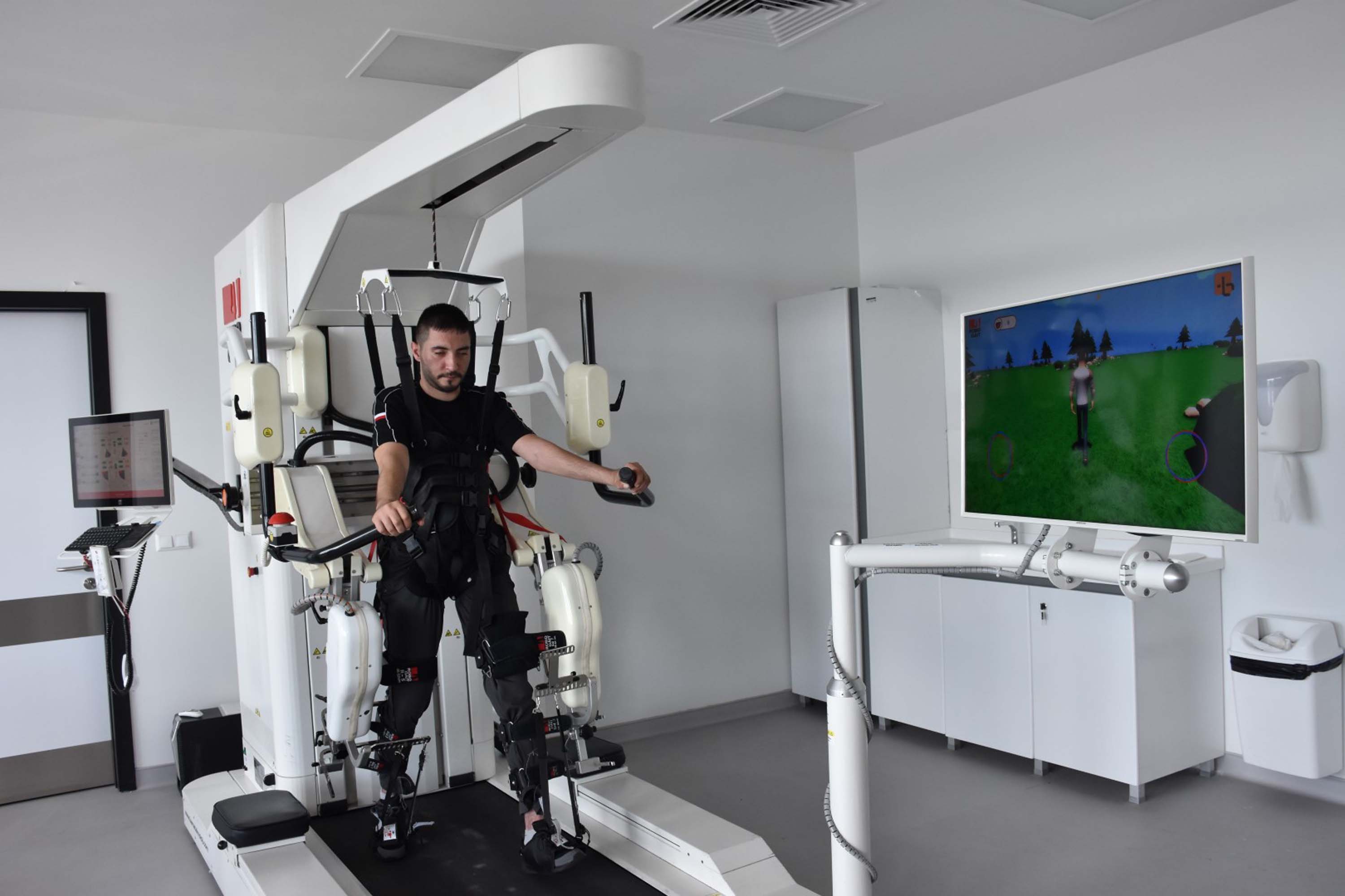 Can'ın tedavisini yapan Fiziksel Tıp ve Rehabilitasyon Uzmanı Doç. Dr. Aslı Çalışkan Uçkun, "Hastamız, motosiklet kazası geçiriyor. Buna bağlı olarak boyun omurlarında kırık meydana geliyor. Yapılan operasyondan sonra kendisini kliniğimize, rehabilitasyon amacıyla aldık. Bireyselleştirilmiş erken rehabilitasyon programladık. Fizyoterapist ve ergoterapistlerimizle birlikte klasik rehabilitasyon aşamasını yürüttük. Ayrıca hastada teknolojik cihazlardan da faydalanmak istedik. Hastamız ilk geldiğinde sadece kollarında hafif bir kas gücü vardı. Bacaklarında ise kas gücü yoktu, felçti. Hastamıza yürüme robotu tedavisi planladık. Hastamızın, bağlanan askı ağırlığını alıyor. Bacaklara takılan robotun kollarındaki sensörler, hastanın doğru yürümesini sağlıyor. Başta yürüme robotuyla ilerledik. Hastanın kas gücü yerine gelmeye başladı. Dengesi daha iyi oldu. Ardından hastayı daha iyi yürüyeceği, bir diğer yürüme sistemine aldık. Bu sistemde de sensörler var. İki sistemde sanal gerçeklik üzerine çalışıyor. Örneğin parkta yürüme veya bir engeli aşmak gibi hastaya sanal senaryo veriliyor. Hasta buna göre hareketleri yapıyor. Cihaz hem görsel hem işitsel olarak uyarıyor. Biraz sağa veya sola kay veya adım uzunluğunu arttır gibi. Fizyoterapist eşliğinde hasta bu hareketleri yapıyor. Sistem beyne uyarı yolluyor. Dolayısıyla amaç beynin yeniden öğrenme kapasitesini arttırmak. Bu cihazla kas gücünü arttırıp, dengeyi sağlıyoruz. Hastamız bir çift destekle yürüyebiliyor. Ciddi fayda gördü. Her hastanın yaralanma seviyesi veya iyileşme potansiyeli farklıdır. Rehabilitasyonda mucize bir ilaç yok. Dolayısıyla mucize bir cihaz da yok. Rehabilitasyonda başarı nasıl kazanılır derseniz. Sabır ve süreklilikle olur" dedi. (DHA)