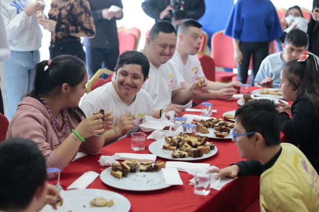 Konak Belediyesi’nin İzmir Konak Meslek Yüksekokulu iş birliğinde gerçekleştirdiği “Engelsiz Mutfak: Down Sendromlu Bireylere Lezzet Atölyesi”ne katılan down sendromlu bireyler yaptıkları kek ve kurabiyelerle aşçılara taş çıkarttı.