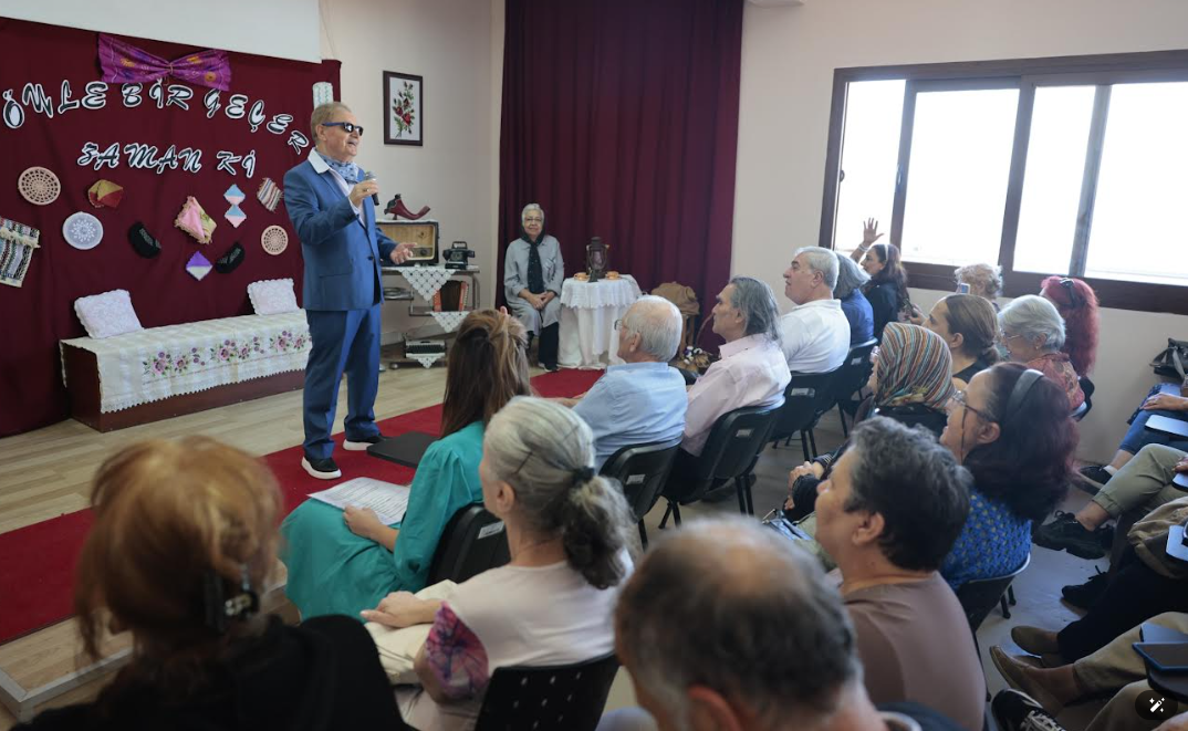 Konak Belediyesi’nin Dünya Yaşlılar Günü etkinlikleri kapsamında, Ziya Zişan Saadet Aytulun Kardeşler İleri Yaş Sağlıklı Yaşam Merkezi’nde düzenlediği “Öyle Bir Geçer Zaman ki…” programı ise merkez üyelerine nostaljik bir gün yaşattı. Oldukça keyifli geçen programda üyeler, evlerinden getirdikleri eski dönem eşyalarıyla, hatıralarını yansıtan bir sergi oluşturdu. Teatral bir bölümü de olan programda İleri Yaş Sağlıklı Yaşam Merkezi üyeleri Emel Sayın, Cem Karaca, Zeki Müren ve Adile Naşit gibi bir döneme damga vurmuş sanatçıları, kostüm ve şarkıları eşliğinde canlandırdı. Taklit yetenekleriyle profesyonelleri aratmayan üyeler, hem eğlendi hem de gençlik yıllarının değerli sanatçılarını andı.