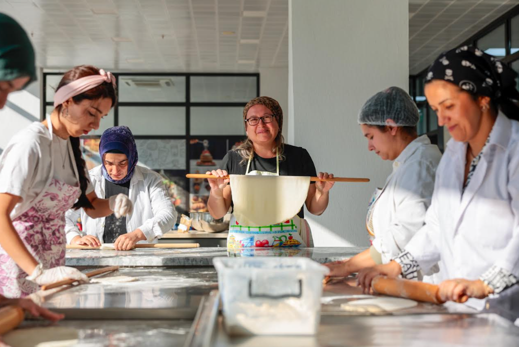 Konak Belediyesi ve İzmir Büyükşehir Belediyesi Meslek Fabrikası işbirliğiyle düzenlenen Geleneksel Hamur Ürünleri Yapımı Kursu ilk mezunlarını verdi. Kursu başarıyla tamamlayan katılımcılara sertifikalarının verildiği törende konuşan Başkan Mutlu, “Kadınların, iş hayatının, üretimin içinde olması ve kendi ekonomik özgürlüğüne kavuşması gerektiğine çok inanıyoruz. Konak’ta her kadının görünür olduğu, güçlü olduğu ve ayaklarının üzerinde durduğu bir kent hayal ediyoruz” dedi.