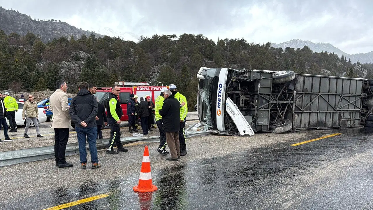 Antalya’dan Konya yönüne giden yolcu otobüsü, yağmur nedeniyle kayganlaşan yolda sürücüsünün direksiyon kontrolünü kaybetmesi sonucu devrildi. Kazada otobüste bulunan 37 kişiden, 2’si ağır 15 kişi yaralandı.