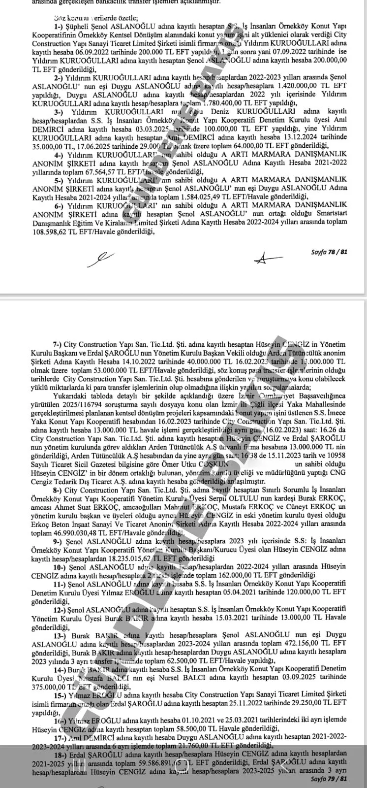 Raporda yer alan para transferlerinin; hukuki ya da ticari bir ilişkiye mi dayandığı, kentsel dönüşüm projeleri kapsamında mı yapıldığı yoksa soruşturma konusu işlemlerle bağlantılı olup olmadığının ancak uzman bilirkişi ya da MASAK uzmanlarınca yapılacak detaylı inceleme sonucunda netlik kazanabileceği vurgulandı.