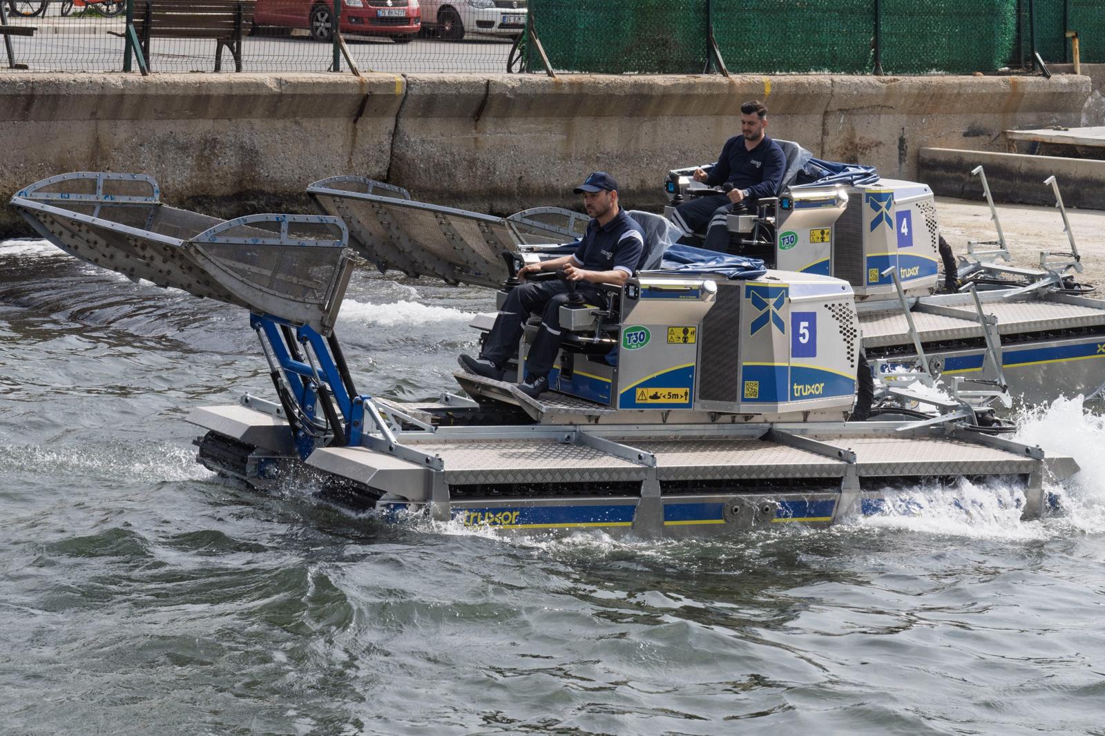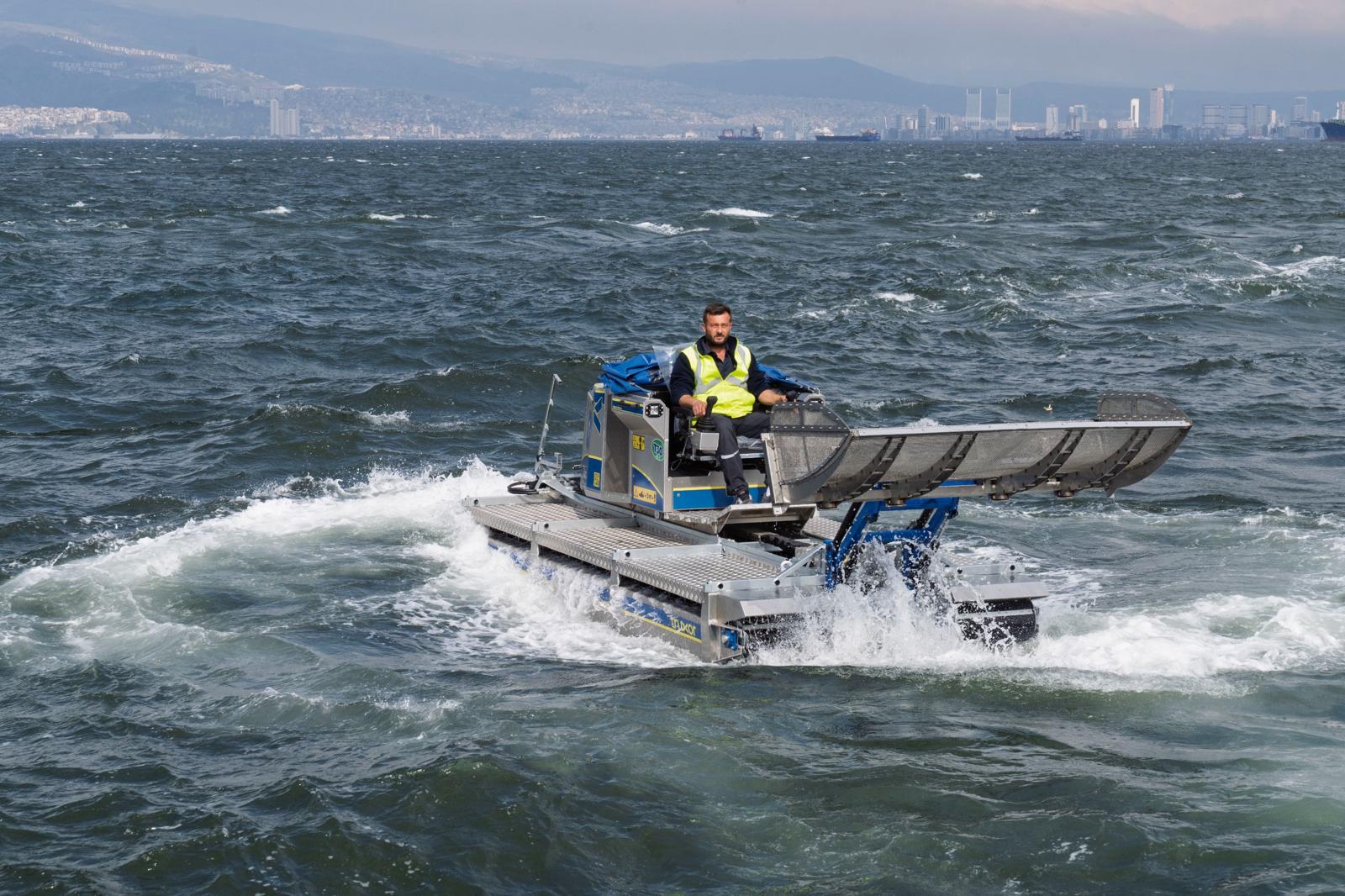 Denizde ve karada hareket edebilme özelliğine sahip olan bu araçlar, paletli yapıları sayesinde özellikle sığ kıyı alanlarında ve erişilmesi zor bölgelerde yüksek manevra kabiliyetiyle çalışabiliyor. Araçların ön kısmında bulunan süzgeç tipi kepçe sistemi, su yüzeyinde biriken deniz marulu ve benzeri organik materyallerin etkin biçimde toplanmasını sağlıyor. Toplanan materyaller daha sonra uygun yöntemlerle bertaraf edilerek çevreye yeniden karışmasının önüne geçiliyor. Bu araçların en önemli avantajlarından biri de, kıyıya yakın sığ alanlarda ve lagün benzeri bölgelerde karadan denize kesintisiz şekilde çalışabilmeleri ve temizlik faaliyetlerinin sürekliliğini sağlamaları.