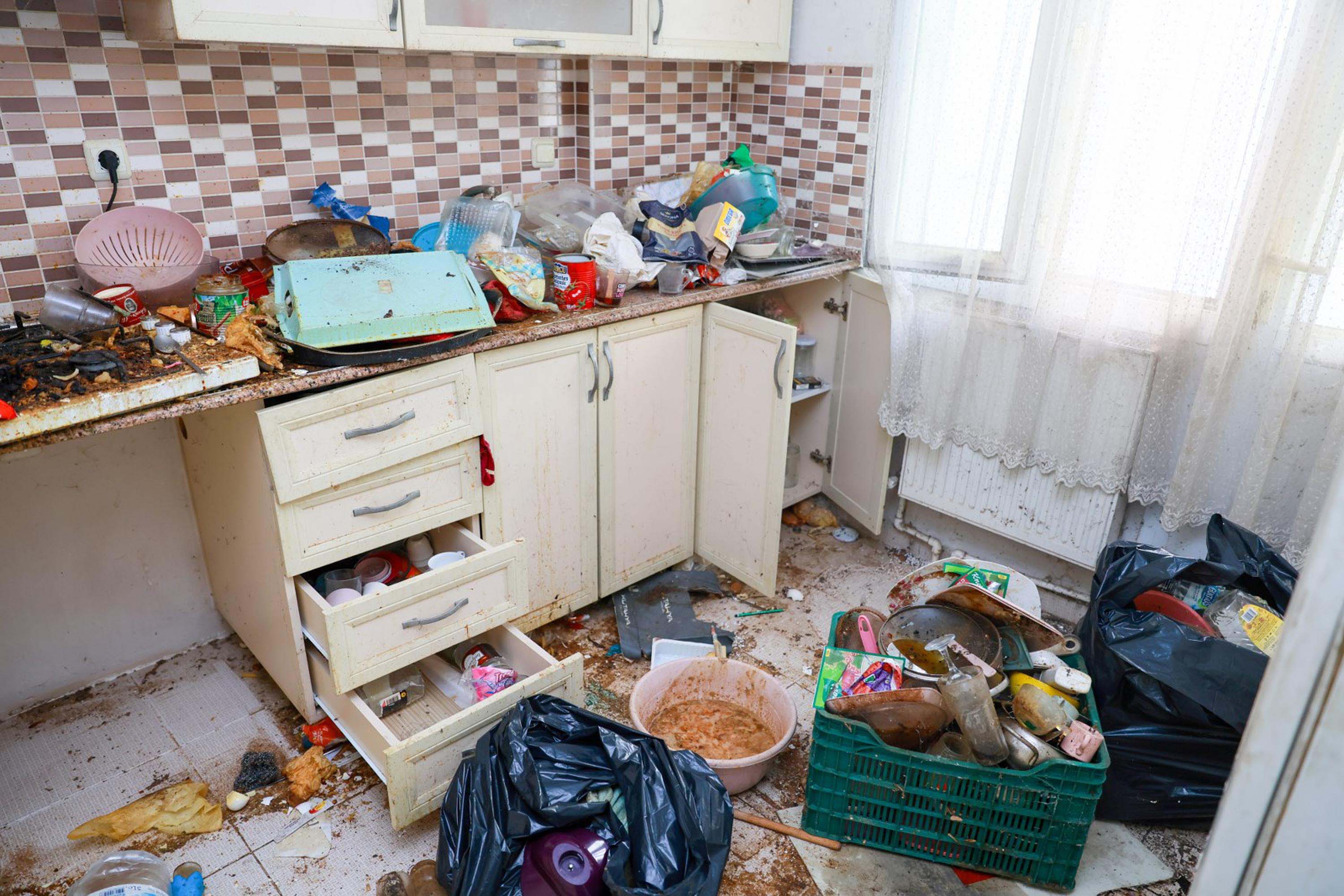 Evden 2 kamyon dolusu atık çıkartıldı. İki gün süren çalışma boyunca evin her köşesi temizlenip, dezenfekte edildi.(DHA)
