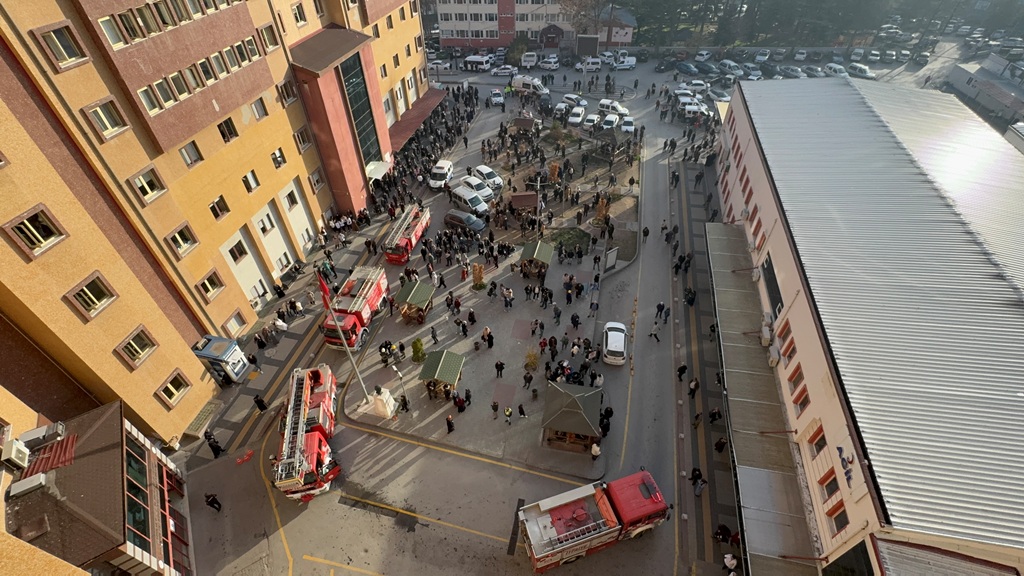Kütahya Evliya Çelebi Eğitim ve Araştırma Hastanesi'nde yangın çıktığı ihbarı sonrası olay yerine çok sayıda itfaiye, sağlık ve polis ekibi sevk edildi.