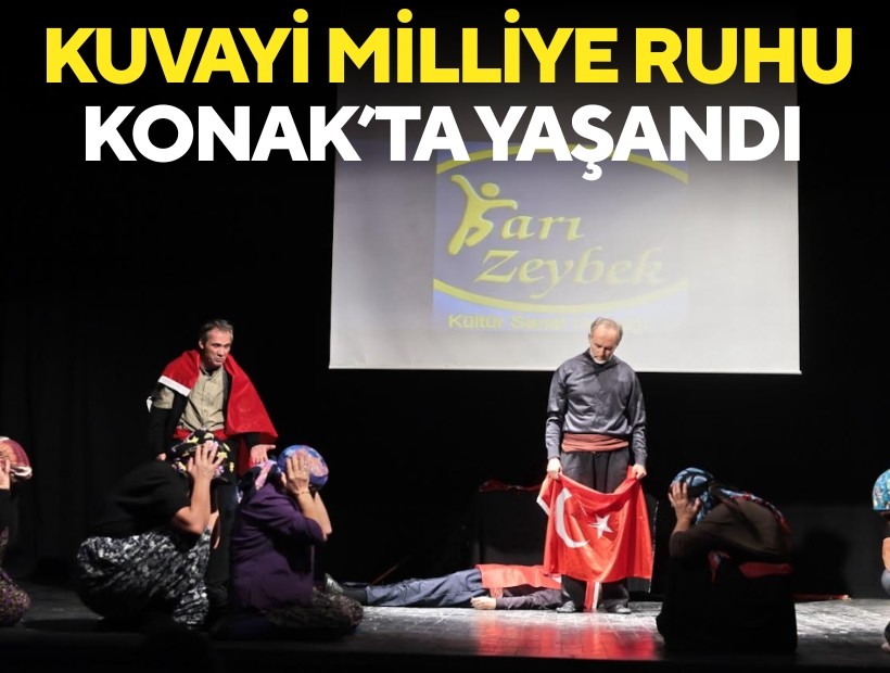 Konak Belediyesi’nin 29 Ekim Cumhuriyet Bayramı kutlamaları kapsamında sahnelenen “Kuvayi Milliye Destanı” tiyatro oyunu ayakta alkışlandı.