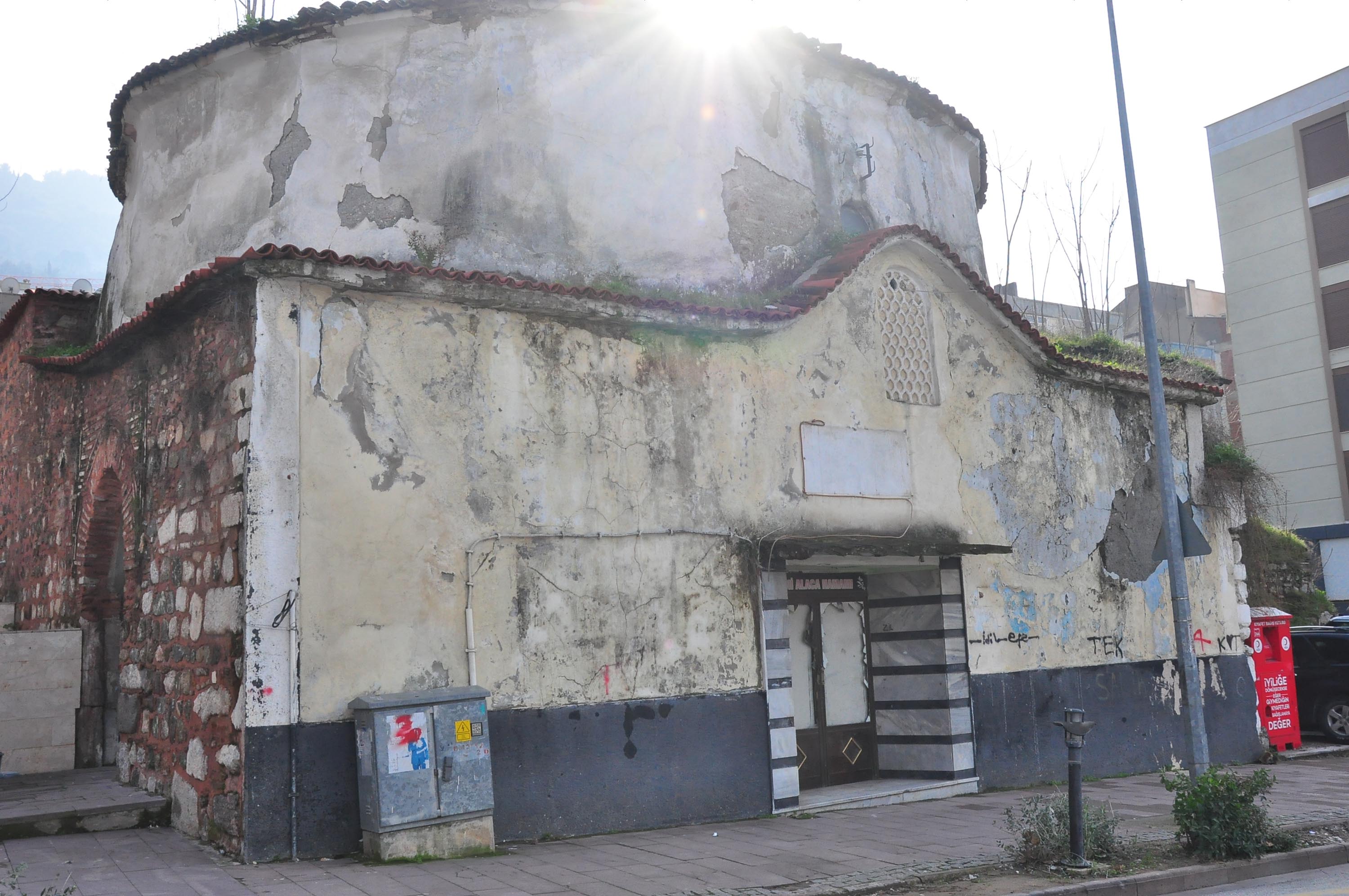 Manisa'nın Şehzadeler ilçesinde, uzun yıllar özel mülk olarak işletilen ve 5 yıl önce kiracısının ayrılmasından sonra atıl kalan 6 asırlık tarihi Alaca Hamamı, ilgisizlik ve bakımsızlık nedeniyle yok olma tehlikesiyle karşı karşıya kalıyor. Hamamın iki mirasçısından biri olan Salih Etker (52), "Hamam, taşınmaz kültür varlığı. Yıkmamız mümkün değil. 3 yıldır satmak istiyoruz, alıcı çıkmıyor" dedi.