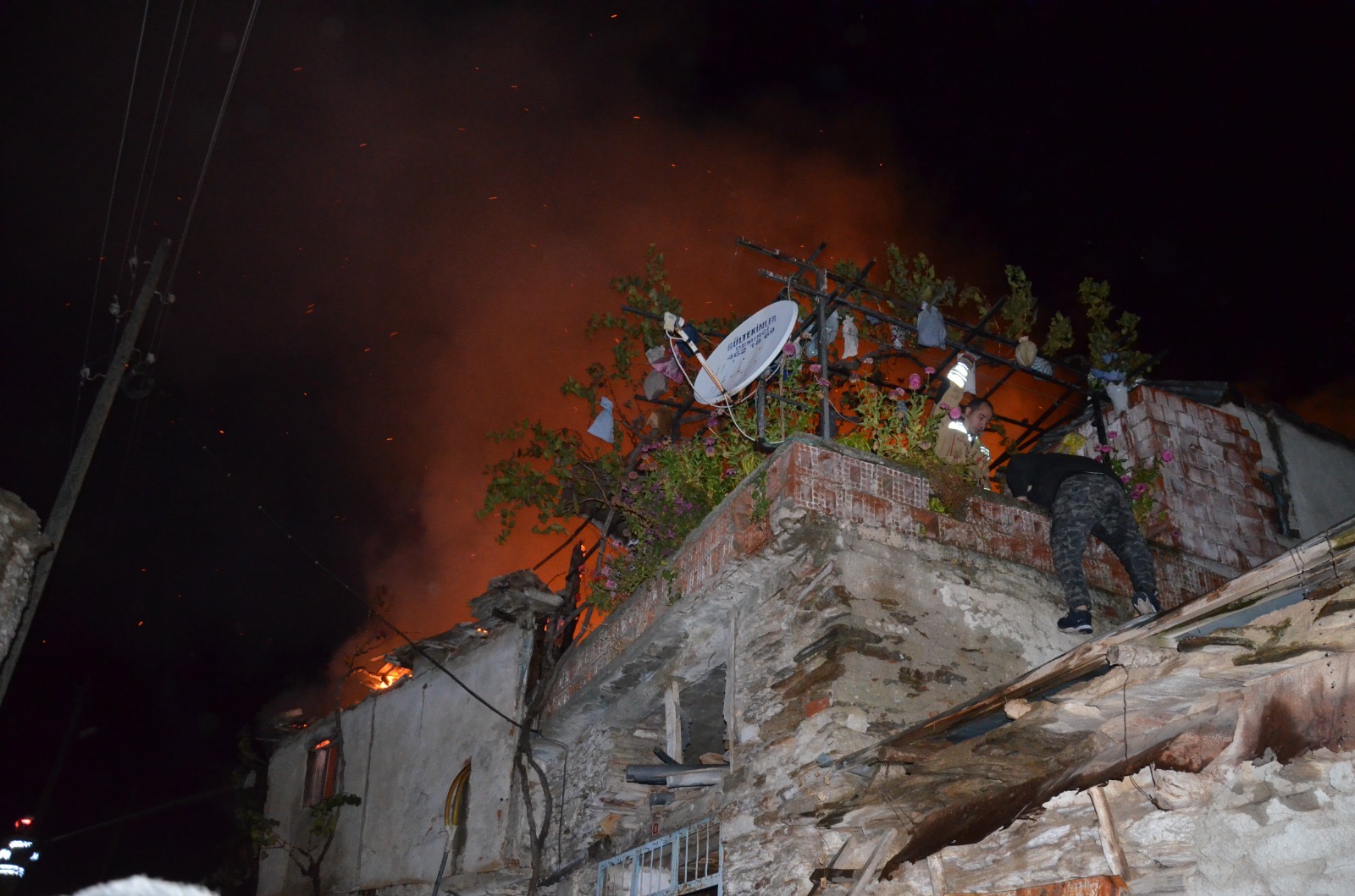 Mahalle sakinleri tarafından evde bulunan vatandaşlar ve evin altında bulunan ahırdaki hayvanlar dışarıya çıkarılırken, durum 112 Acil Çağrı Merkezi’ne bildirildi.