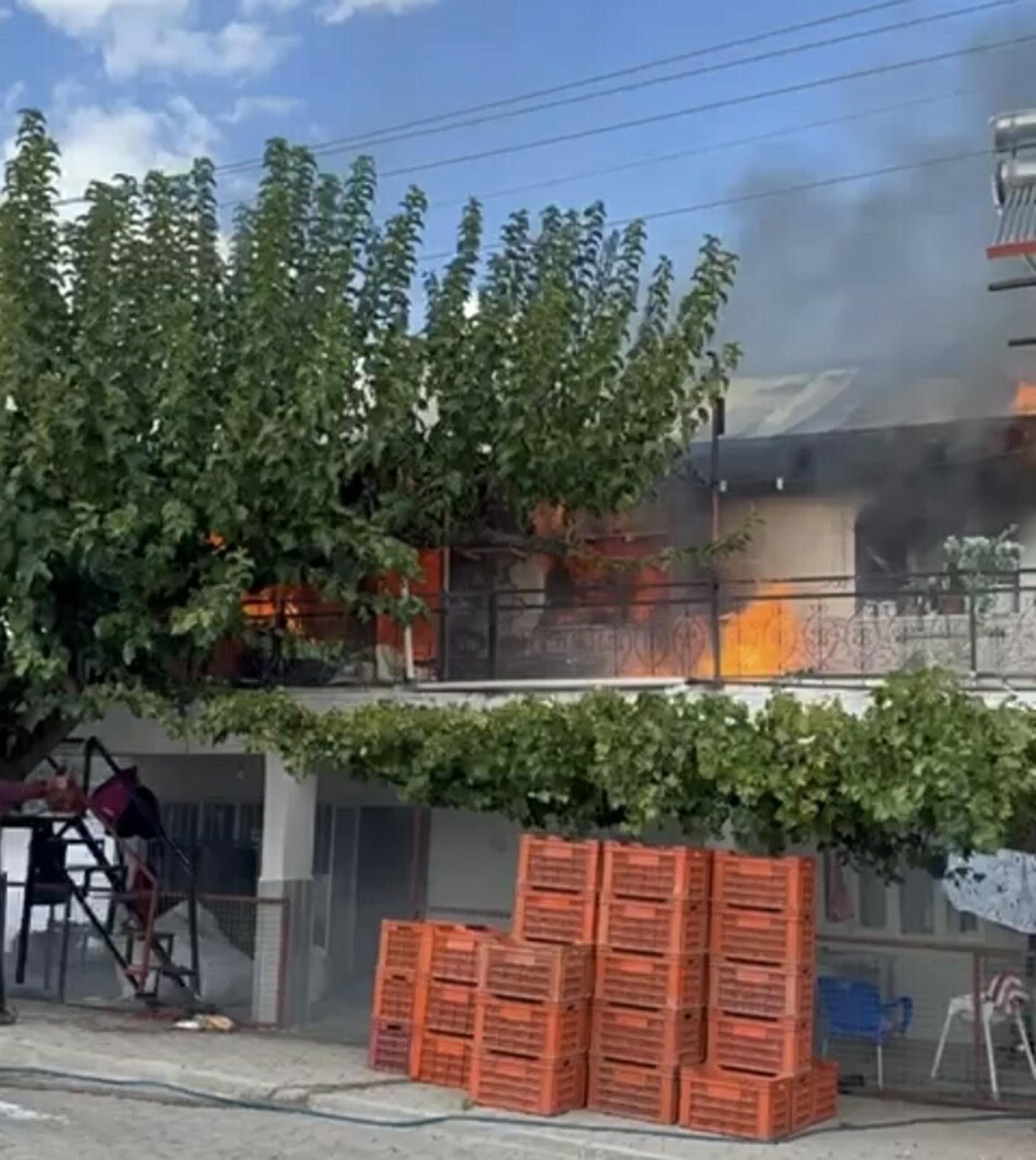 Girelli Mahallesinde bugün saat 14.00 sıralarında, Erol Sırçak'a ait iki katlı evin üst katında yangın çıktı. Alevler üst katı kısa sürede tamamen sardı.
