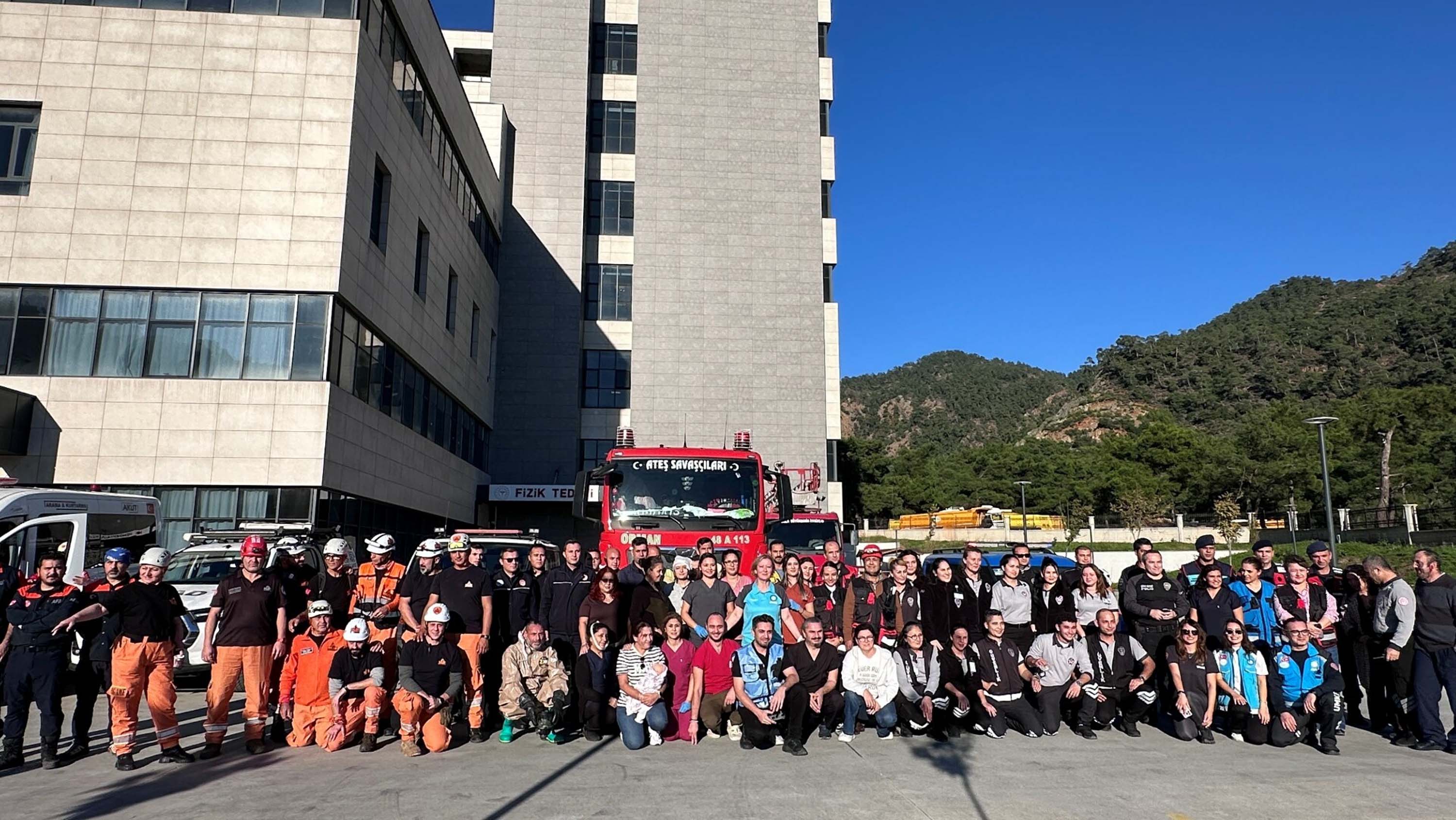 Muğla'nın Marmaris ilçesi devlet hastanesinde geniş katılımla deprem ve yangın tatbikatı gerçekleştirdi. Tatbikatta, deprem sonrası çıkan yangın, kimyasal sızıntılar ve bebeğin kaçırılması gibi senaryolar uygulandı. Ekipler, yaralı tahliyesi ve acil durum yönetiminde etkinliklerini test etti.