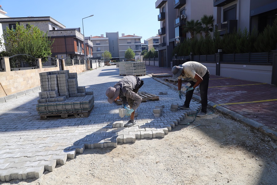 Menderes Belediyesi, Altıntepe Mahallesi’nde kilit parke döşeme çalışması gerçekleştiriyor.