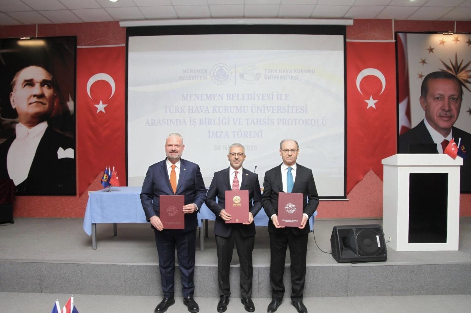 Menemen Belediyesi ve Türk Hava Kurumu Üniversitesi arasındaki tarihi iş birliğinin imzalarıysa Ankara'da atıldı. Menemen Belediye Başkanı Aydın Pehlivan, Türk Hava Kurumu Kayyum Heyeti Başkanı Prof. Dr. Akın Ünal ve Türk Hava Kurumu Üniversitesi Rektörü Prof. Dr. Rahmi Er'in nihai imzalarını attığı dev protokolle birlikte, ilçedeki üniversite sayısı ikiye çıktı.
