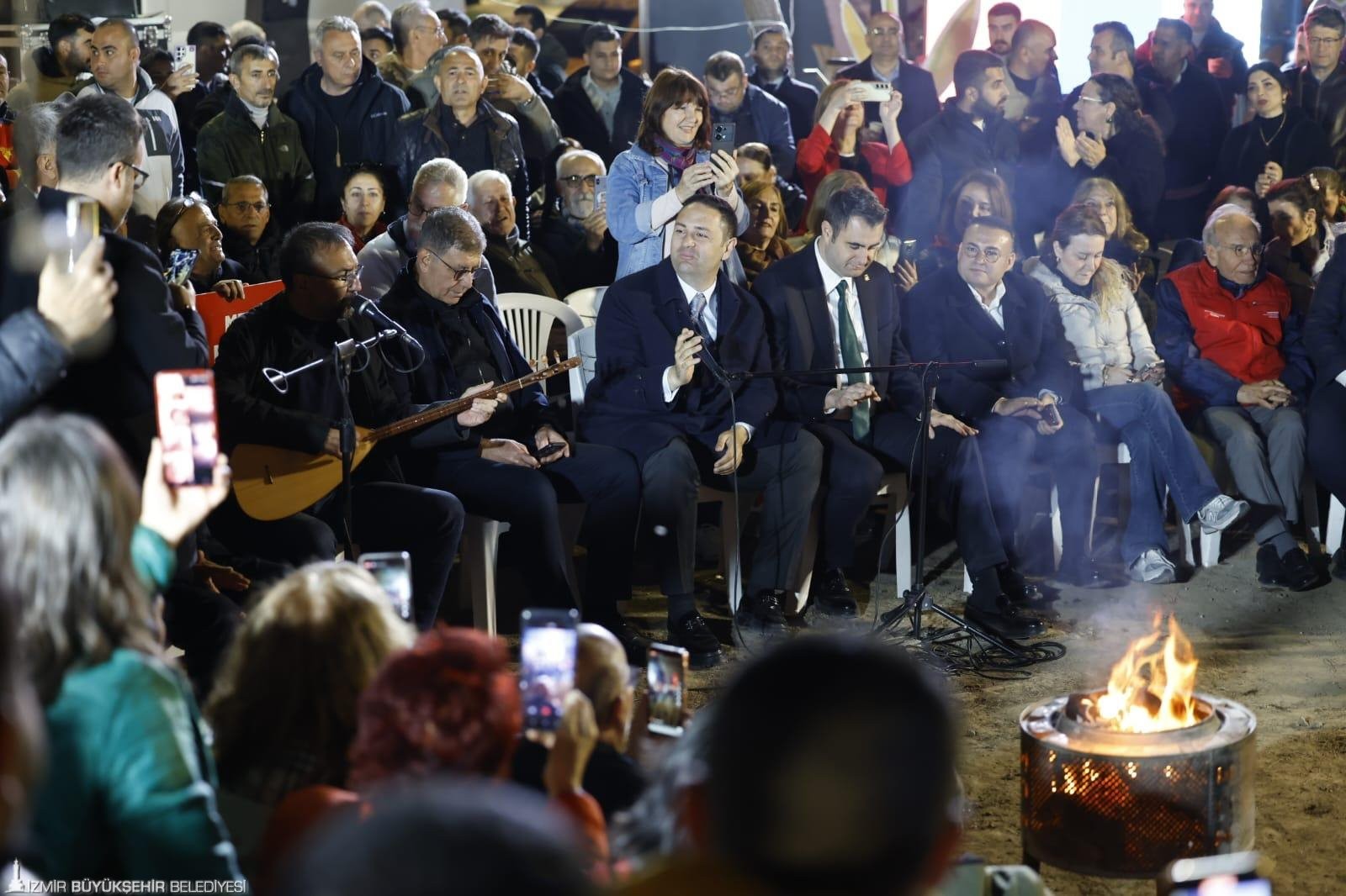 İzmir Büyükşehir Belediyesi’ne ait Meslek Fabrikası'na yönelik el koyma girişimine karşı başlatılan nöbet sürüyor. Başkan Dr. Cemil Tugay öncülüğünde bir araya gelen yurttaşların, siyasiler ve sanatçıların söylediği türküler haksızlığa karşı ses oldu.