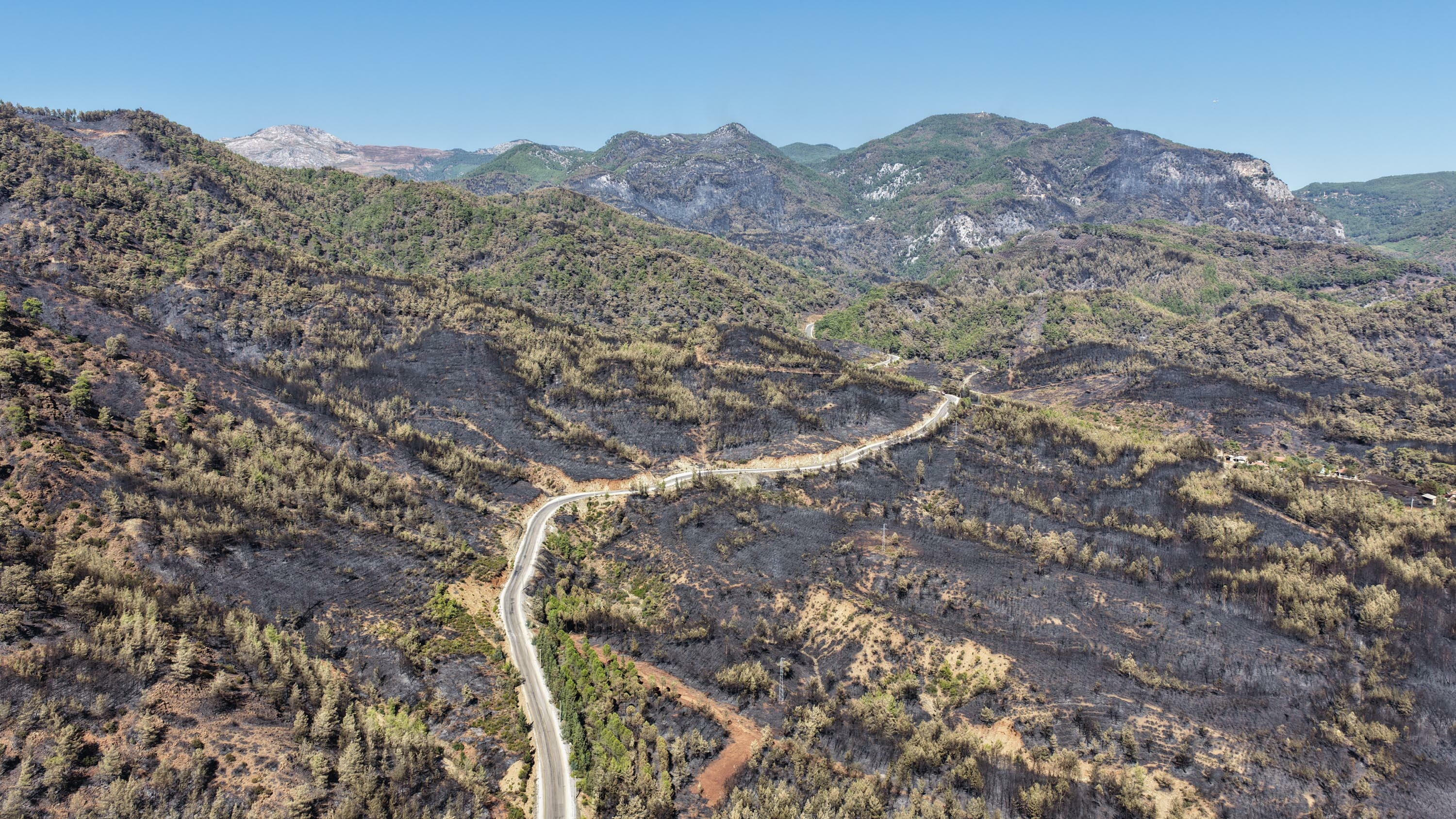 Muğla'da 3 bin hektar ormanın zarar gördüğü yangında yanan alanlar dronla görüntülendi