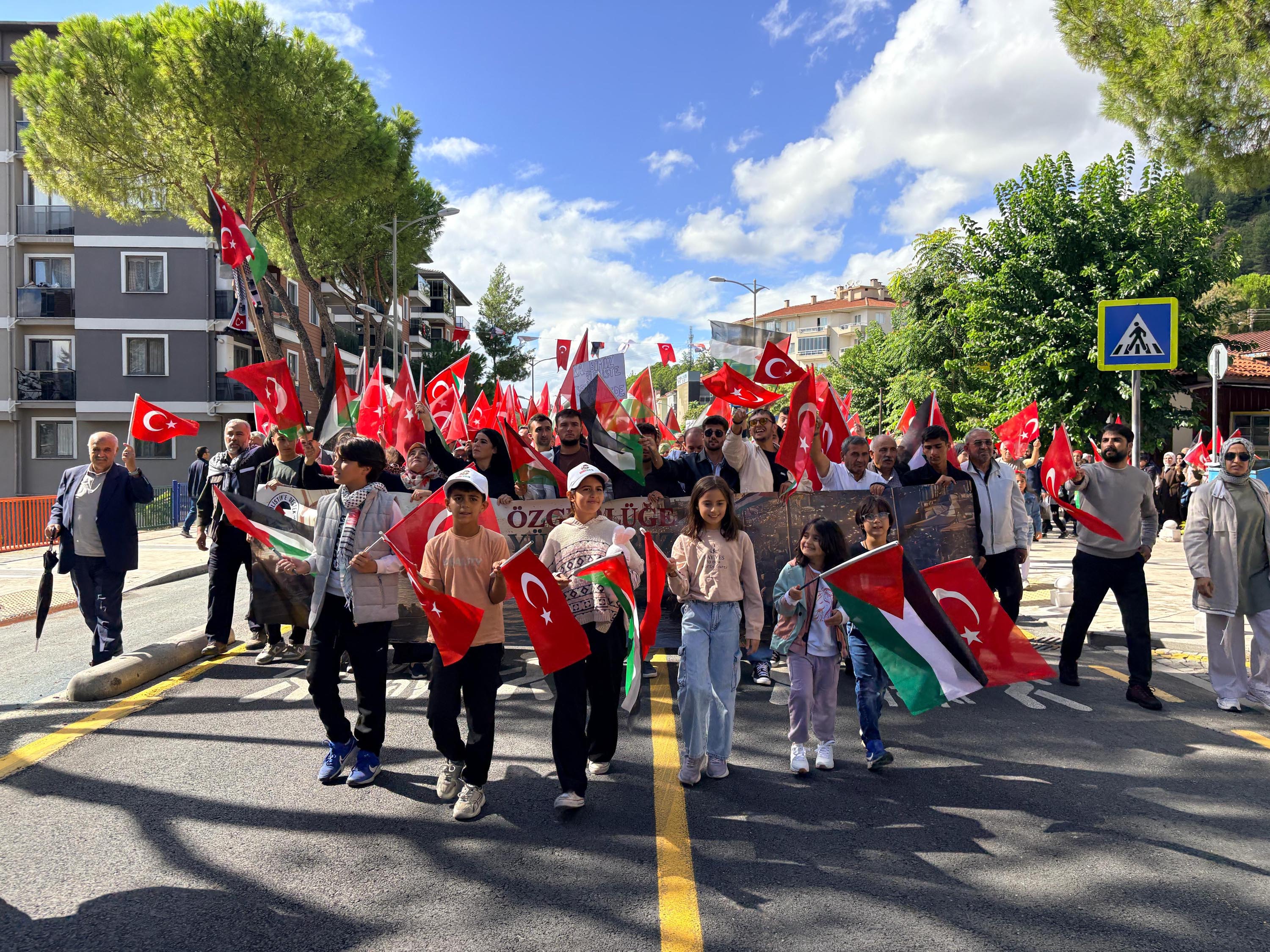 Muğla'nın Menteşe ilçesinde yüzlerce kişi, Filistin'in özgürlüğü ve Küresel Sumud Filosu'na destek amacıyla yürüyüş gerçekleştirdi.