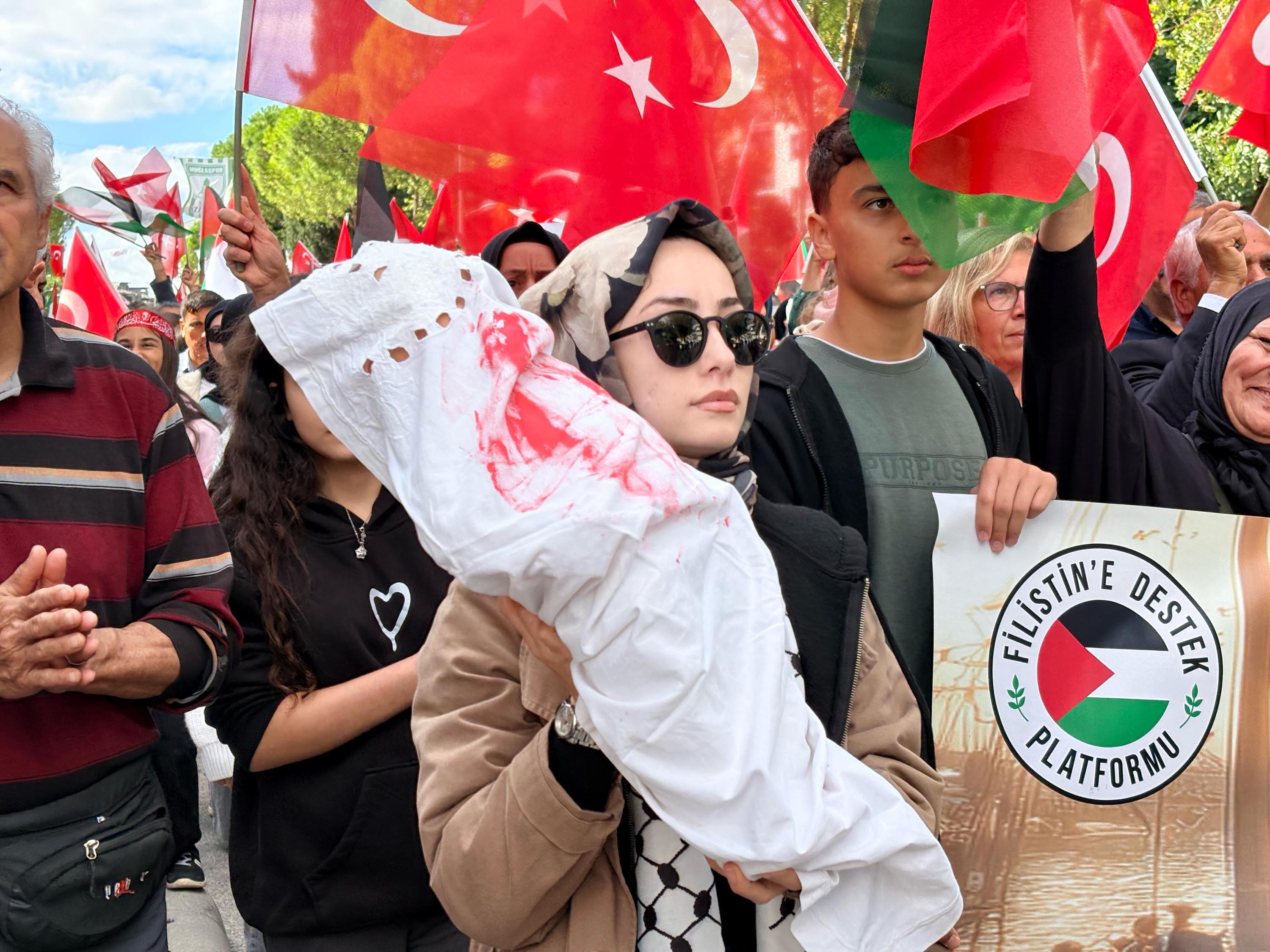 Muğla Filistin'e Dayanışma Platformu adına konuşan Nurkan Boz, İsrail'in saldırılarının tüm insanlığa karşı işlendiğini belirterek "İsrail'in 77 yıldır sürdürdüğü işgal, artık bir imha savaşına dönüşmüştür. Filistin halkı açlığa, susuzluğa ve ölüme mahkum edilmiştir. Bu soykırım yalnızca Filistinlilere değil, insanlığın vicdanına da yöneliktir" dedi.