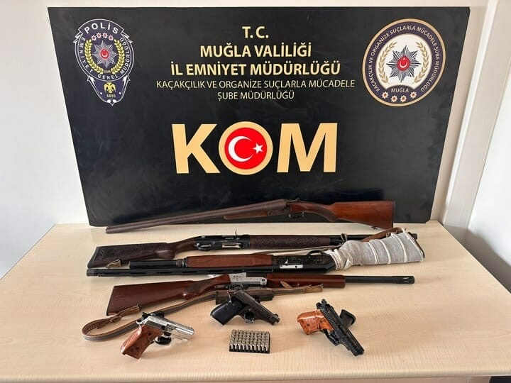 Muğla’da ruhsatsız silah bulunduran ve sosyal medya üzerinden paylaşım yapanlara yönelik düzenlenen operasyonda çok sayıda silah ile mühimmat ele geçirildi. Operasyonda gözaltına alınan 8 şüpheliden 4’ü tutuklandı.