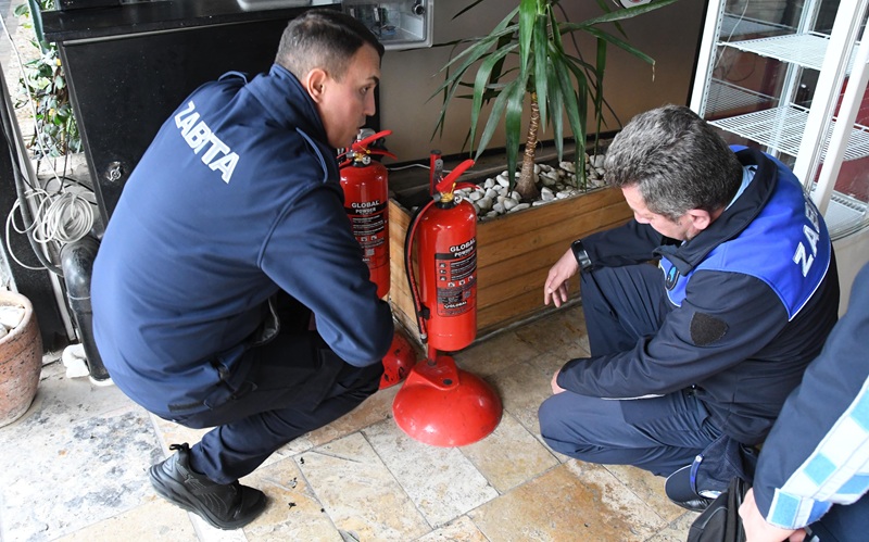 Denetimlerde ayrıca yangın tüplerinin doluluk durumu ve geçerlilik tarihlerine de bakılırken, işyerlerinin çalışma ve izin ruhsatları da kontrol edildi.