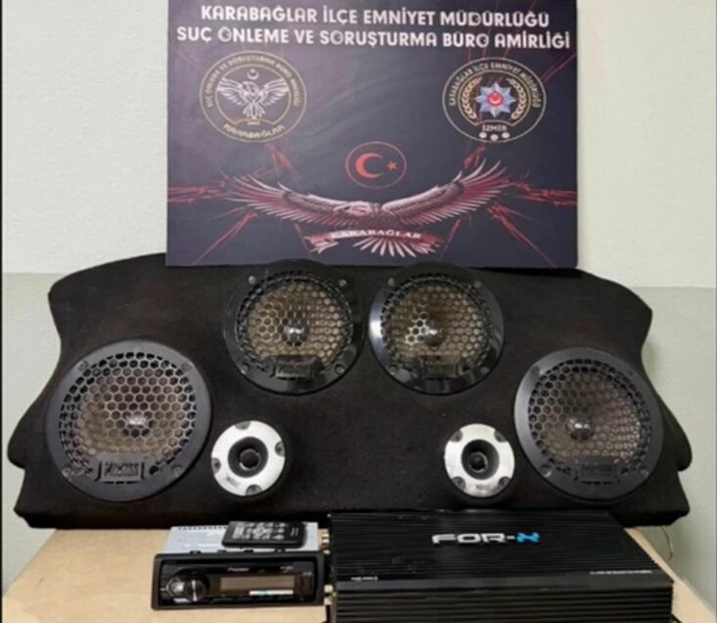 Karabağlar ilçesinde 28 Ekim'de bir otomobilin kelebek camını kırarak 4 hoparlör, 2 tiz, 1 teyp ve 1 amfi çalan şüpheliler, güvenlik kameralarına yansıdı. Karabağlar İlçe Emniyet Müdürlüğü Suç Önleme ve Soruşturma Büro Amirliği ekipleri, çevredeki 22 farklı güvenlik kamerasını inceleyerek şüphelilerin izini sürdü. Polis, 2 şüphelinin çaldıkları malzemeleri plakasız bir araca taşıdıklarını, dikkat çekmemek için üzerlerindeki giysileri değiştirdiklerini ve ardından Konak yönüne kaçtıklarını tespit etti.