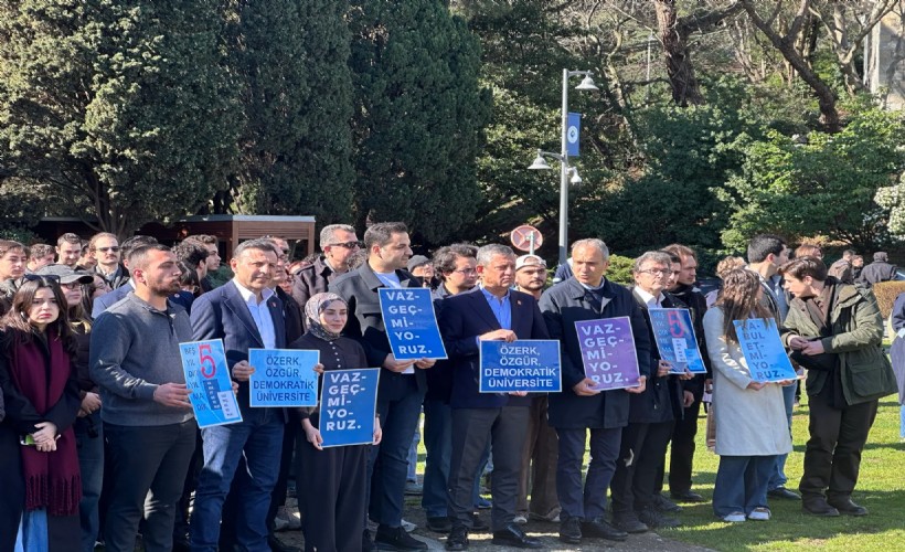 CHP Genel Başkanı Özgür Özel, 2021 yılından bu yana rektörlüğe karşı protestolarını sürdüren Boğaziçi Üniversitesi akademisyenlerine destek olmak üzere Güney Kampüs'te protestoya eylemine katıldı.