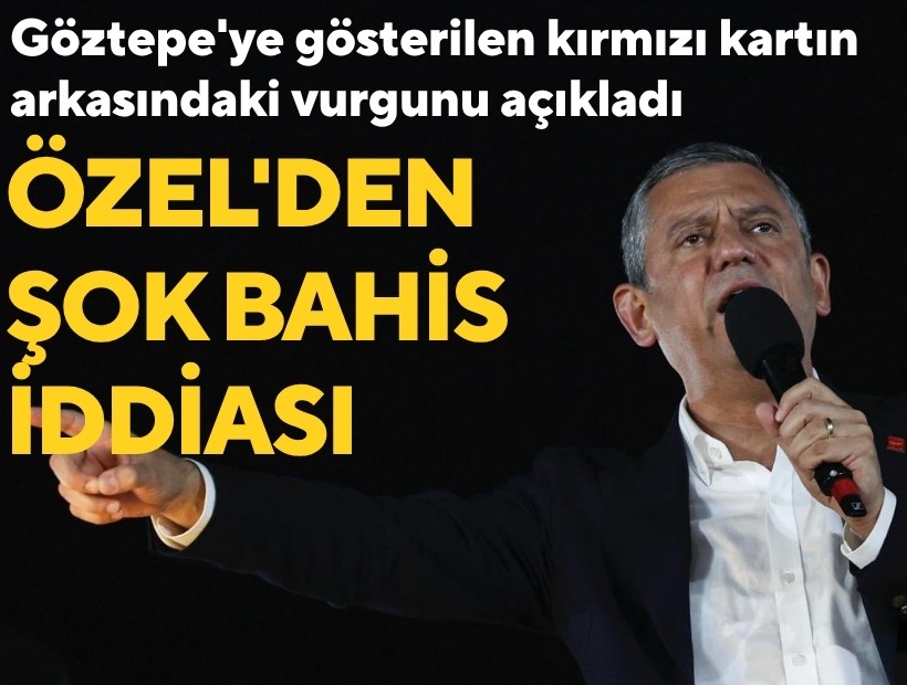 CHP Genel Başkanı Özgür Özel, İstanbul Esenyurt'taki mitingde Türk futbolundaki hakemlerin bahis oynadığı yönündeki soruşturmayı gündeme taşıdı. Özel, Göztepe'nin bir maçına, Kıbrıs'tan 5.5 milyonluk bahis oynandığını söyledi. CHP lideri Özel, "İzmir’in takımı Göztepeli futbolcu Bokele’ye hakem haksız kırmızı kart vermiş, aynı gün Kuzey Kıbrıs’tan birisi 5.5 milyonluk kırmızı karta bahis oynamış. Memlekette tuz kokmuş. Ahlak bitmiş” dedi.