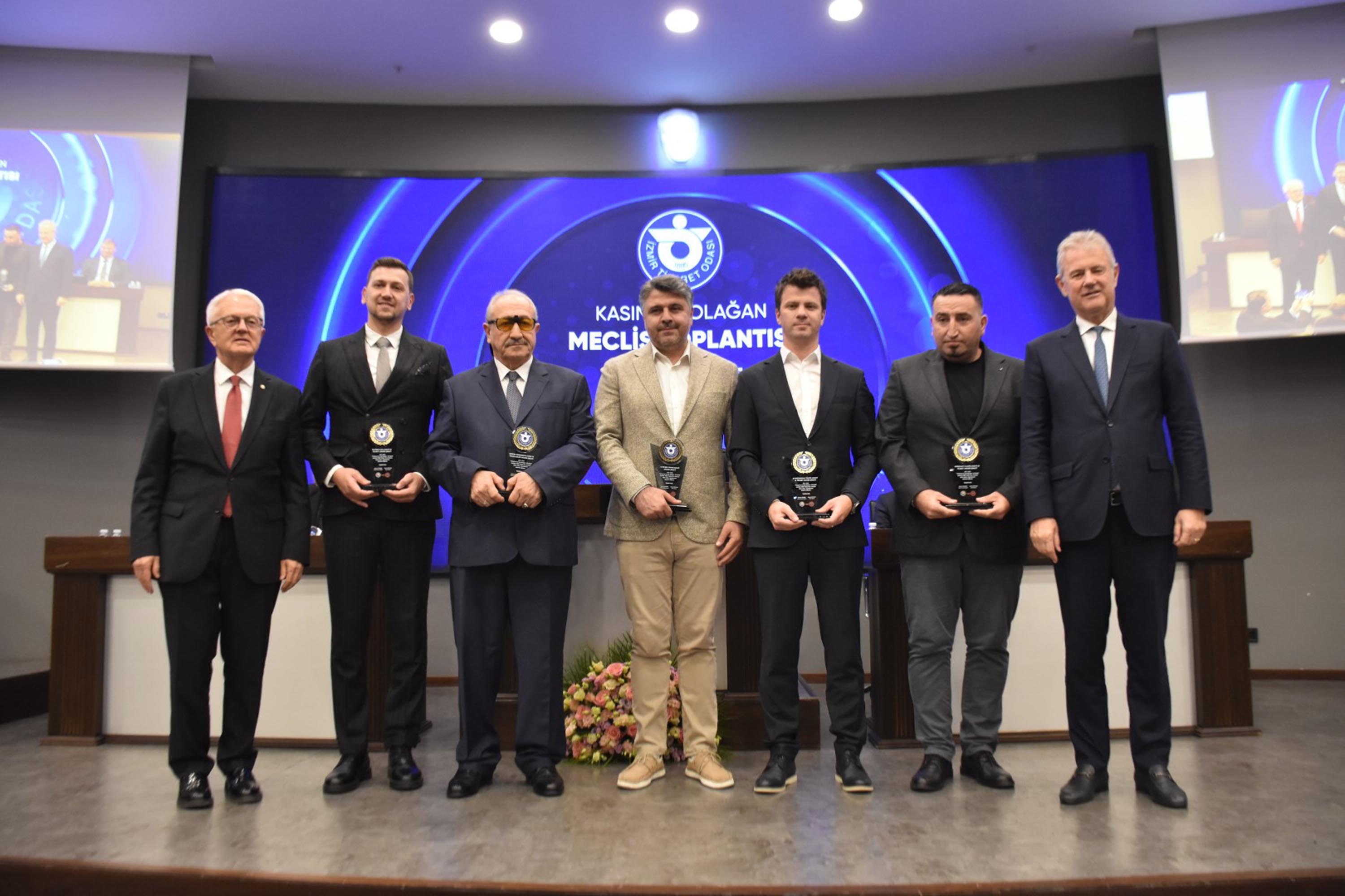 Toplantının sonunda bu yıl 9'uncusu gerçekleşen TOBB Türkiye 100 Programı'nda İzmir'den ödül almış 6 üye firmaya plaket takdimi yapıldı.(DHA)