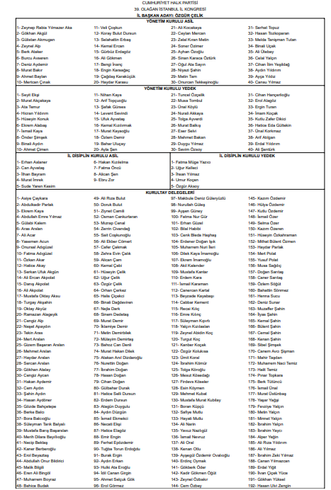 CHP’nin tutuklu Cumhurbaşkanı adayı ve İBB Başkanı Ekrem İmamoğlu ve eşi Dilek Kaya İmamoğlu da listede kurultay delegesi olarak yer aldı.