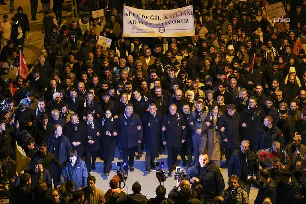 Adalet Peşinde Aileleri ise yürüyüş boyunca "Afet değil katliam, adalet istiyoruz" pankartıyla yürüdü.