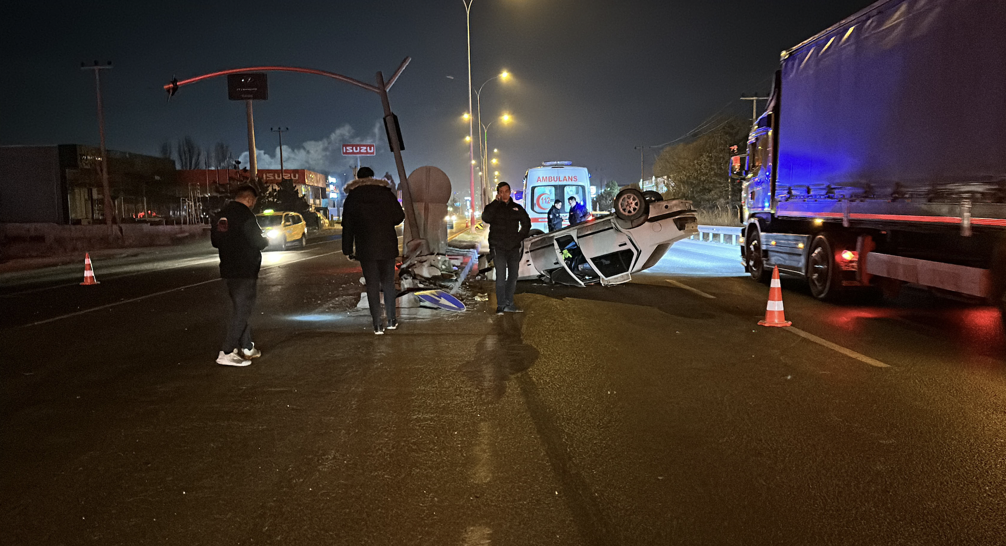 Kontrolden çıkan otomobil, refüje çıkarak trafik ışığına çarptıktan sonra takla attı. Kazada yaralanan sürücü O.A., çevredekilerin yardımıyla araçtan çıkarıldı. İhbar üzerine kaza yerine sağlık ve polis ekipleri sevk edildi. Sağlık ekiplerince ilk müdahalesi yapılan O.A., ambulansla Kütahya Şehir Hastanesi'ne sevk edildi.