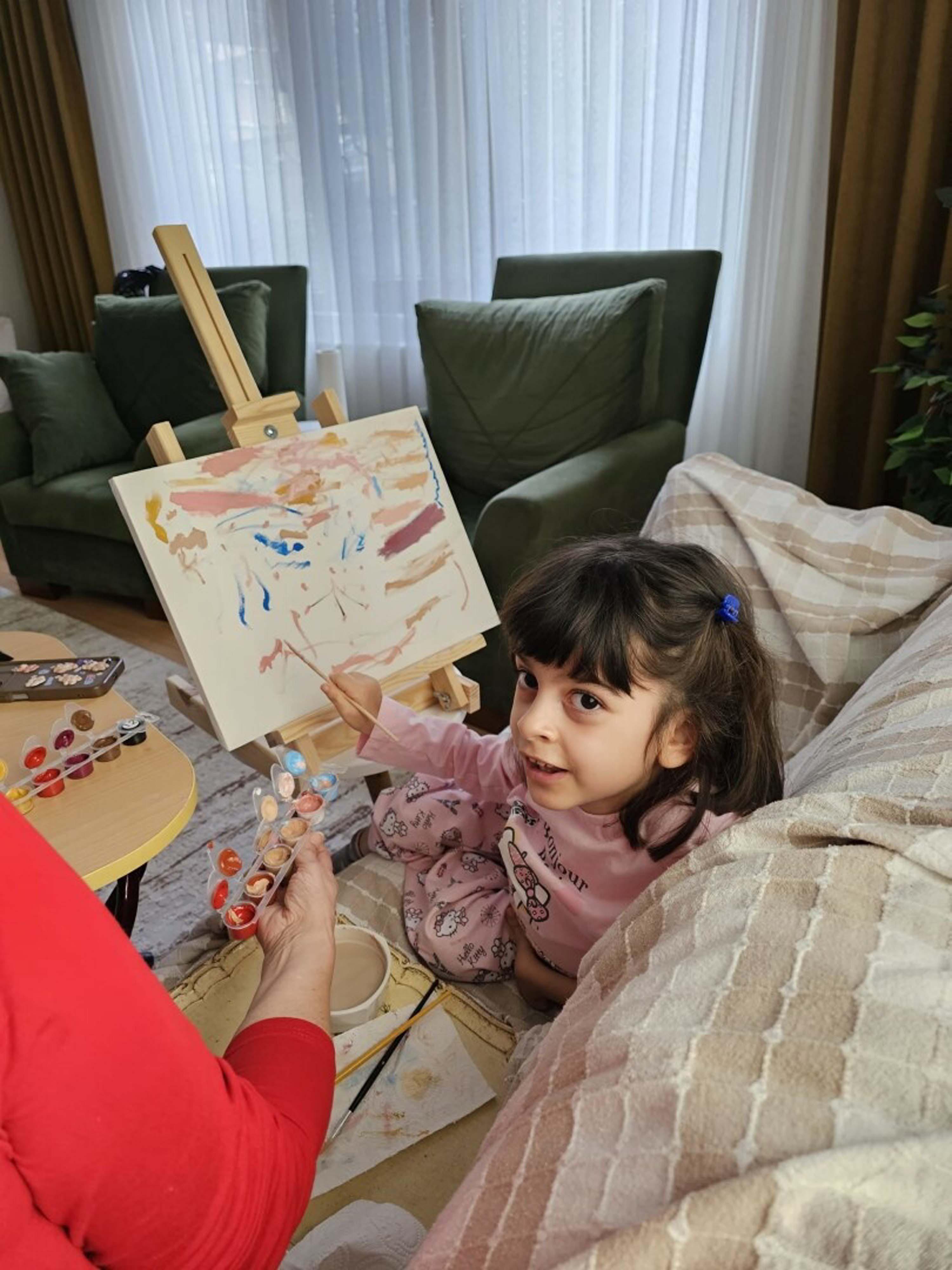 İzmir'de, resim yapmayı çok seven 6,5 yaşındaki SMA Tip 2 hastası Esra Alkan, evde annesiyle birlikte hazırladığı ebruli ve yağlı boya tabloları satarak tedavisi için açılan bağış kampanyasına destek topluyor. Anne Akgül Alkan (41), kızının gün geçtikçe kas kaybı nedeniyle fırça tutarken zorlandığını belirtip, "Dans etmek, baleye, okula gitmek istiyor. Yürüdüğünü hayal ediyor. Çok çaba sarf ediyor. Benim kaldıramadıklarımı o küçücük bedeninde kaldırmaya çalışıyor. Parmak ve nefes egzersizleri yapıyoruz. Hiç acısız günü yok" dedi.