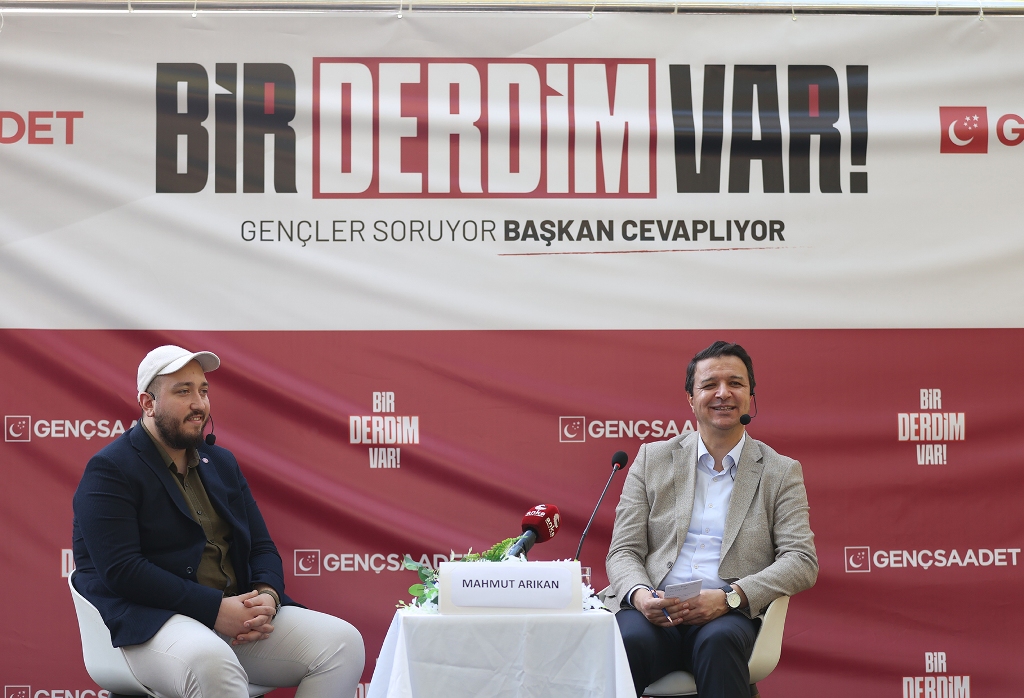 Kardeşlik Buluşması programının ardından gençlerle bir araya gelmek üzere Kültürpark’taki Menekşe Altı Sahnesi’nde gerçekleşen ‘Bir derdim var’ söyleşisine katılan Saadet Partisi Lideri Mahmut Arıkan, gençlerin sorunlarını, beklentilerini ve önerilerini dinledi. Arıkan, Saadet Partisi’nin hayata geçireceği “Sevgim Sosyal Yardım Planı” ve “Türkiye Kalkınma Planı” ile gençlerin işsizlik ve geçim sorununa çözüm sunacaklarını açıkladı.