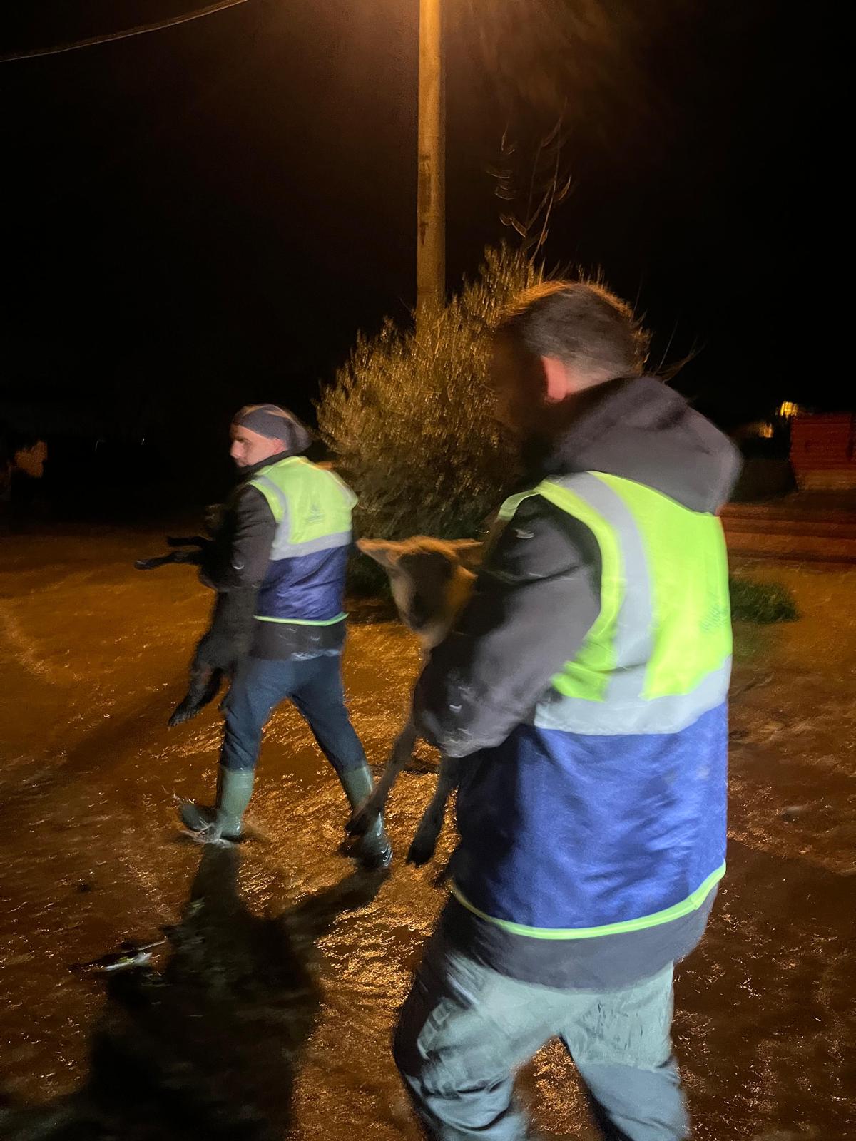 İzmir Büyükşehir Belediyesi İtfaiye Dairesi Başkanlığı ekipleri, Torbalı’nın Göllüce Mahallesi’nde sağanak yağış nedeniyle su basan bir ahırda mahsur kalan koyun ve tavukları kurtarmak için seferber oldu.