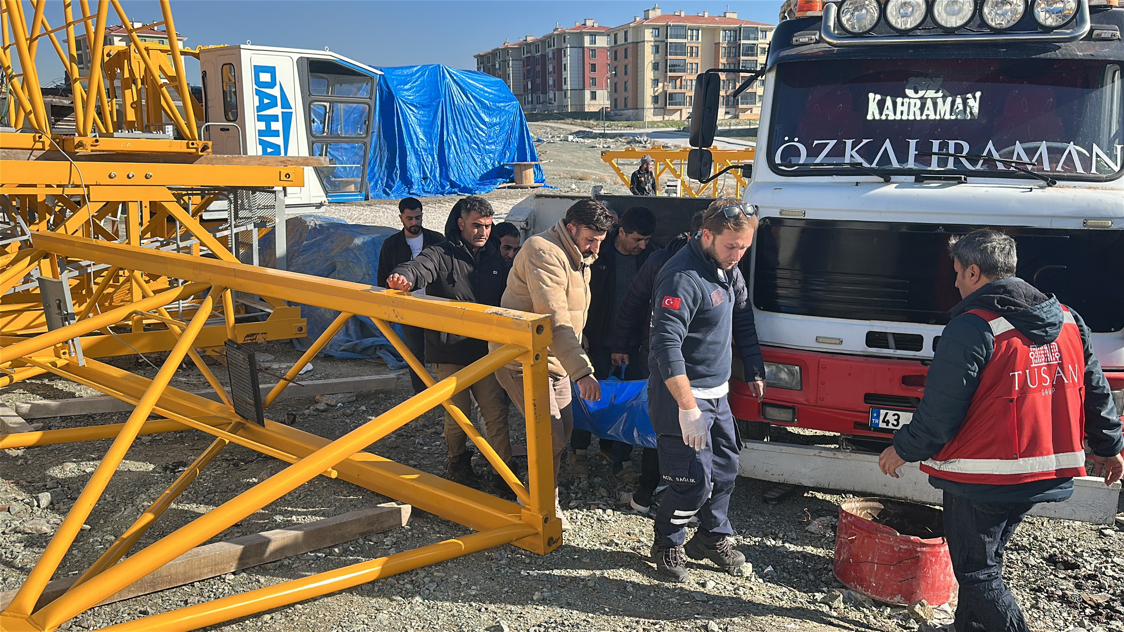 Kütahya’da bir inşaat şantiyesinin kule vinç çalışması sırasında çelik iskeletin çarptığı işçi Abbas E. yaralandı.