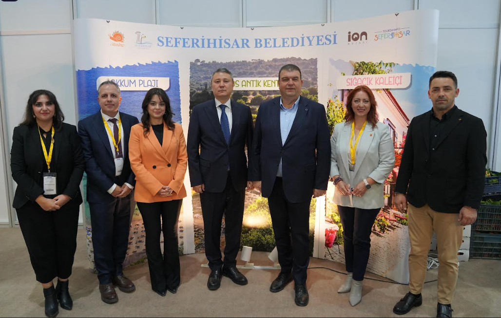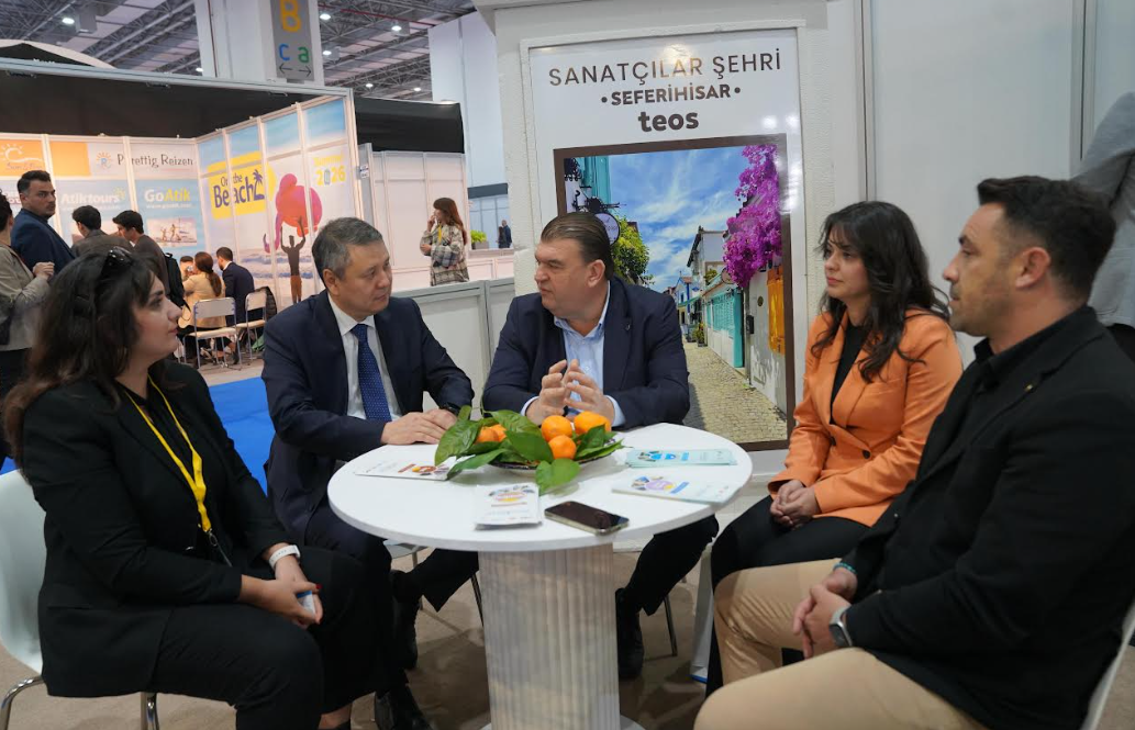 Kazakistan Başkonsolosu Bauyrzhan Akatov ve beraberindeki heyet, Seferihisar standını ziyaret ederek ilçenin turizm vizyonu, kültürel projeleri ve yeni dönem hedefleri hakkında Başkan Yetişkin’den bilgi aldı.