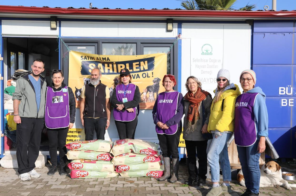 Kampanyaya destek veren Seferihisar Belediye Başkanı İsmail Yetişkin, 10 adet kulübe bağışlayarak barınağı ziyaret etti.