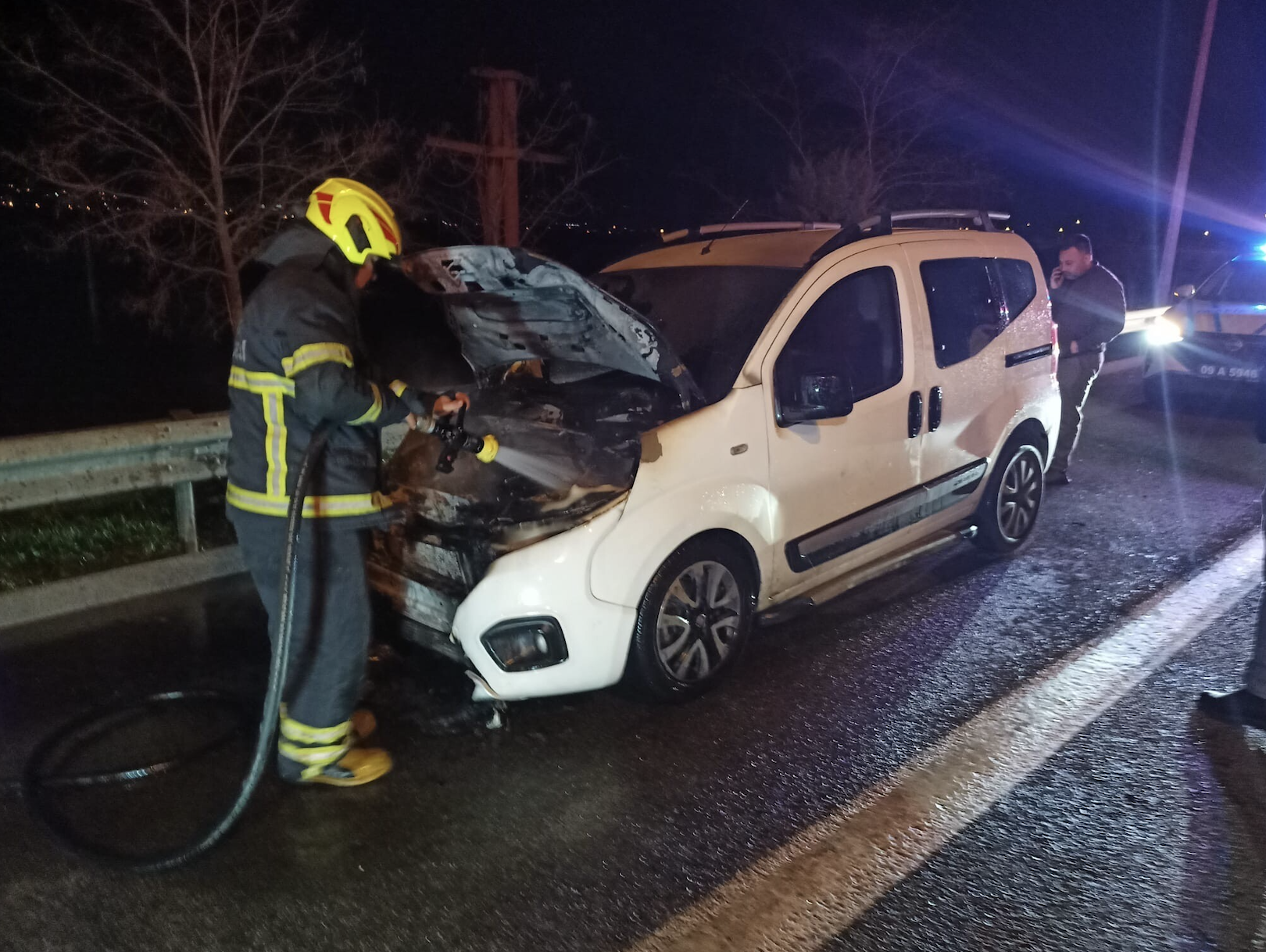 Dün saat 21.30 sıralarında Aydın–Denizli Otoyolu Çeştepe mevkisinde İsmail K. idaresindeki 09 ADM 821 plakalı hafif ticari araç, seyir halindeyken motor kısmından alev aldı.