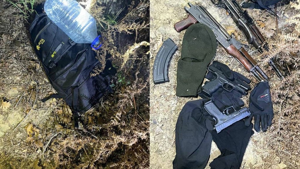 Ormanlık alana gizlenmiş çanta içerisinden iki Kalaşnikof ve iki tabanca olmak üzere toplam dört silah ele geçirildi. Saldırganları kullandığı kar maskesi ve eldiven teçhizatlar da çantadan çıktı.