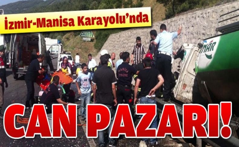 İZMİR- Manisa karayolunda, kontrolden çıkan süt tankeri, aynı yönde giden bir kamyona çarpıp yol kenarındaki drenaj kanalına devrildi. Direksiyon başında sıkışan sürücü Tahsin Koyun, itfaiye ekiplerince kurtarıldı ve hastaneye kaldırıldı.