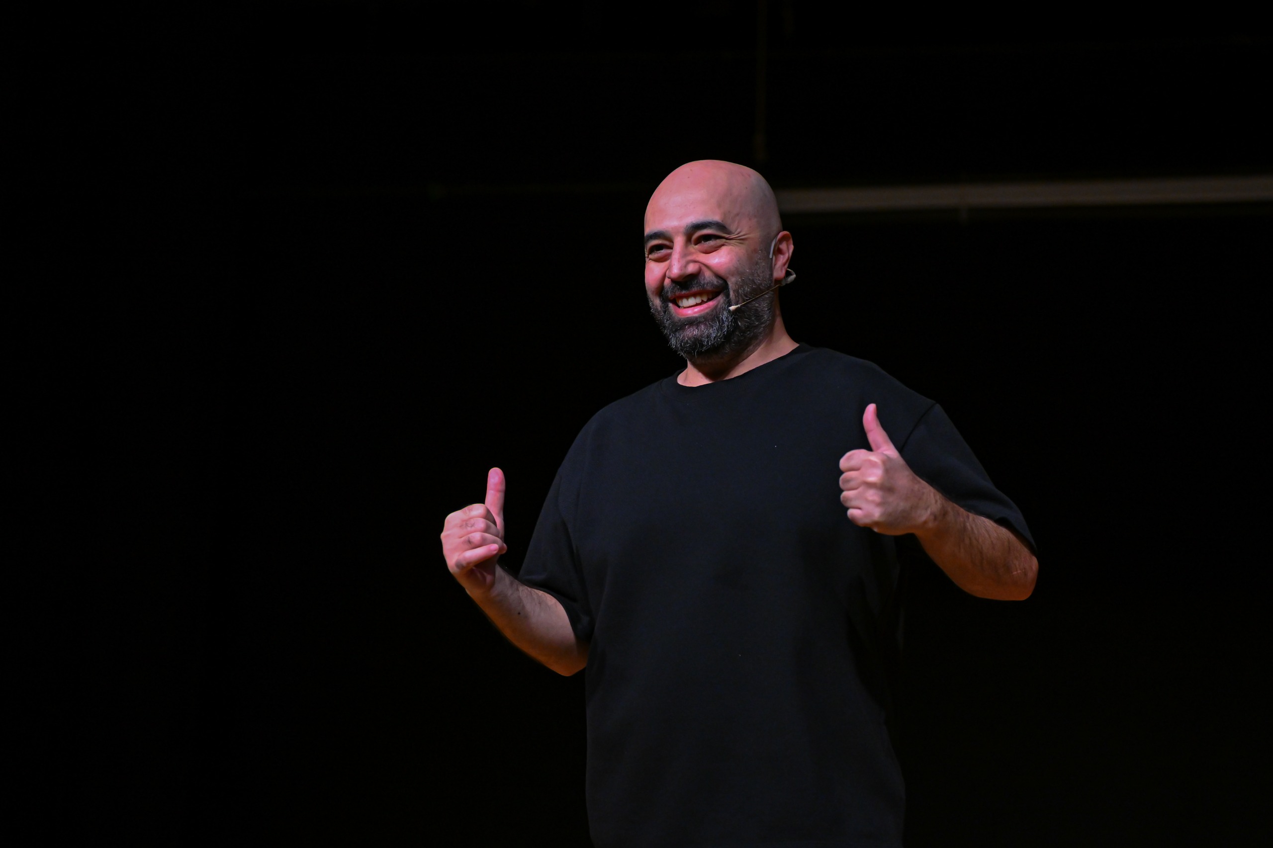 Kariyerine sosyal medya platformlarında paylaştığı skeçlerle başlayıp kısa sürede geniş bir takipçi kitlesine ulaşan Tahsin Hasoğlu, BKM Mutfak çatısı altında yaptığı tek kişilik gösterisiyle İZKİTAP kapsamında sahne aldı.