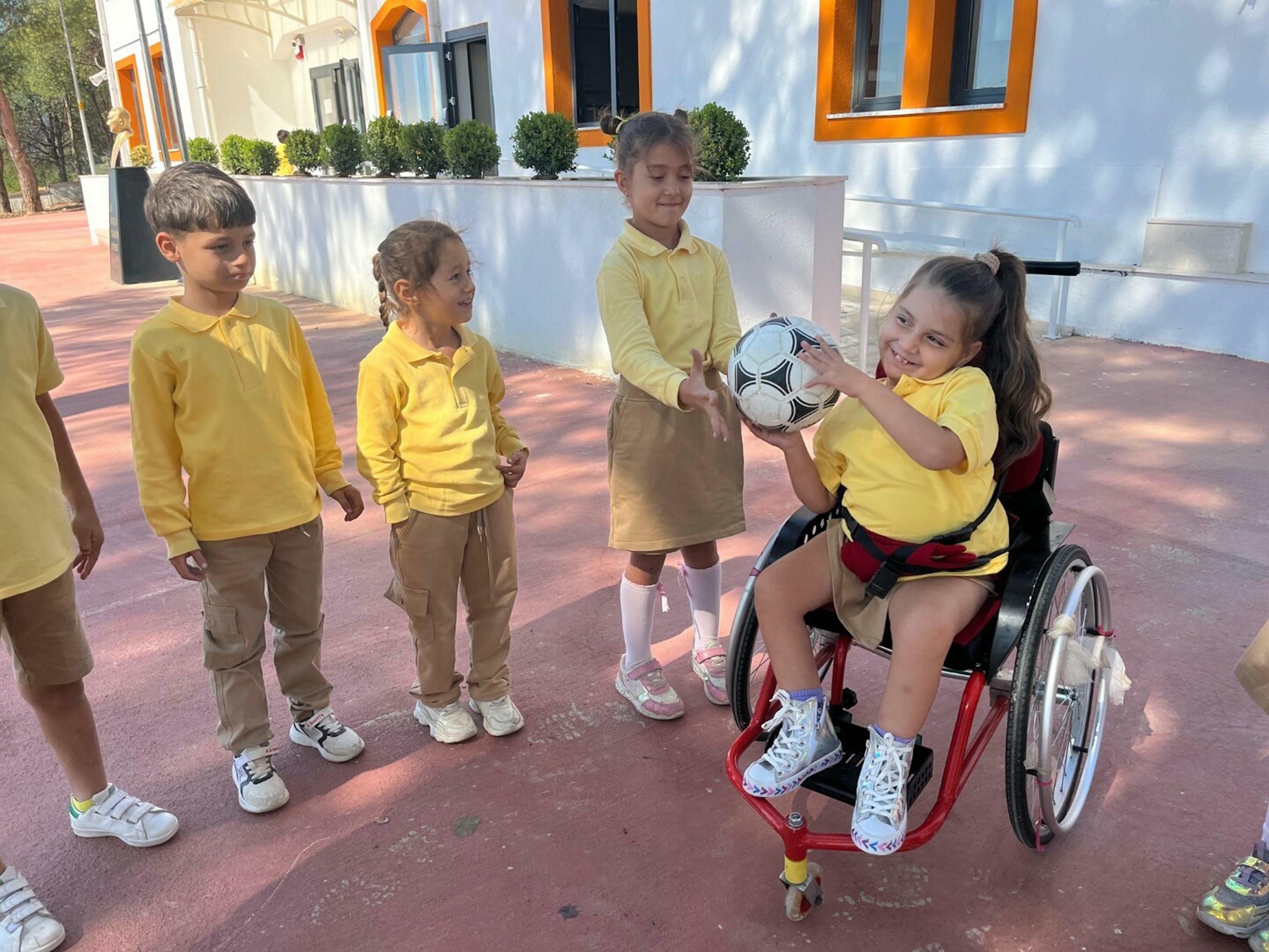 Defne Işıkdere'nin öğretmeni Ece Nur Küçükdoğan da şöyle konuştu: "Bu yıl 1'inci sınıflarda özel bir öğrencim de bizimle birlikte. Defne, akademik başarısının yanında arkadaşlık ilişkileri çok güçlü bir öğrencim. Yardımseverliğiyle dikkat çekiyor. Aynı zamanda verilen sorumlulukları yerine getiren, sorumluluk bilinci gelişmiş bir öğrenci. Onun yolculuğunda yanında bulunduğum için çok mutluyum. Defne sınıfa geldiği ilk günden itibaren arkadaşlarıyla çok iyi kaynaştı. Sınıf arkadaşları da ona büyük destek oldu. Onun da oynayabileceği oyunları seçiyorlar, birlikte vakit geçiriyorlar. Derslere giriş çıkışlarda, teneffüslerde ve oyunlarda arkadaşları Defne'ye yardımcı oluyor. Bu dayanışma sayesinde hem bizler hem de Defne çok şanslıyız. Özellikle birkaç arkadaşı var ki Defne'ye karşı kendilerini sorumlu hissediyorlar. Okulumuzun patika yollarında ve engelli rampasında ona destek oluyorlar. Teneffüslerde ve beden eğitimi etkinliklerinde de Defne'ye eşlik ediyorlar." (DHA)