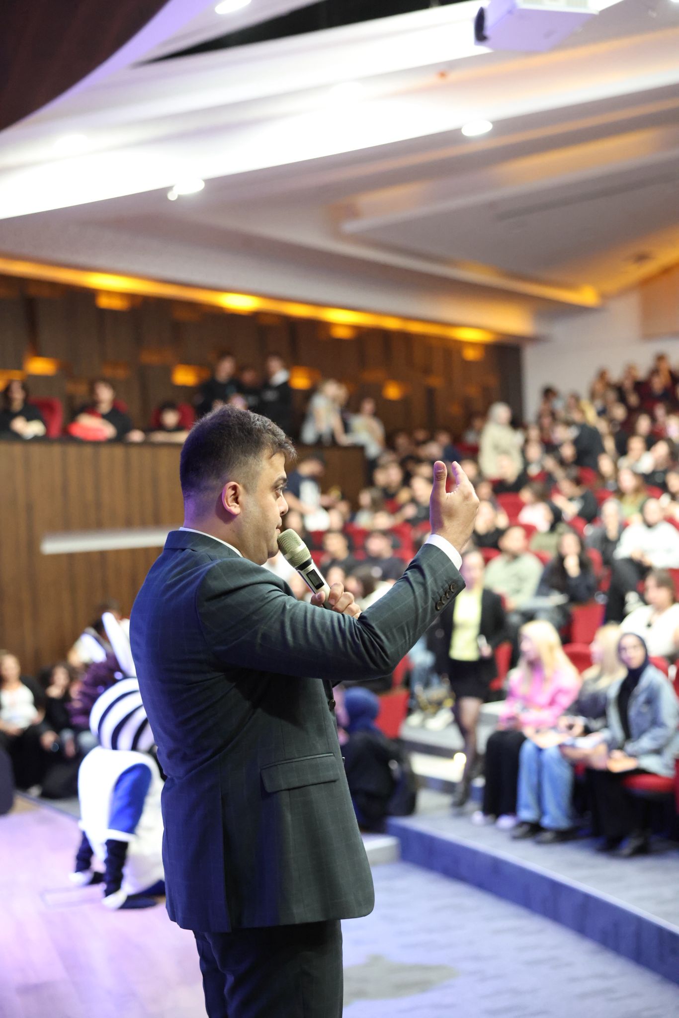 Akademik yaşamında karşılaştığı zorlukları da gençlerle paylaşan BABAN, tiyatronun, iletişimin ve sanatın kişisel gelişim üzerindeki katkılarını anlattı. “Tiyatro bana insanlara yalnızca insan olarak bakmayı öğretti. Başarı yalnızca derslerle değil, kendinizi çok yönlü geliştirmenizle gelir.” sözleriyle öğrencilere mesaj verdi.